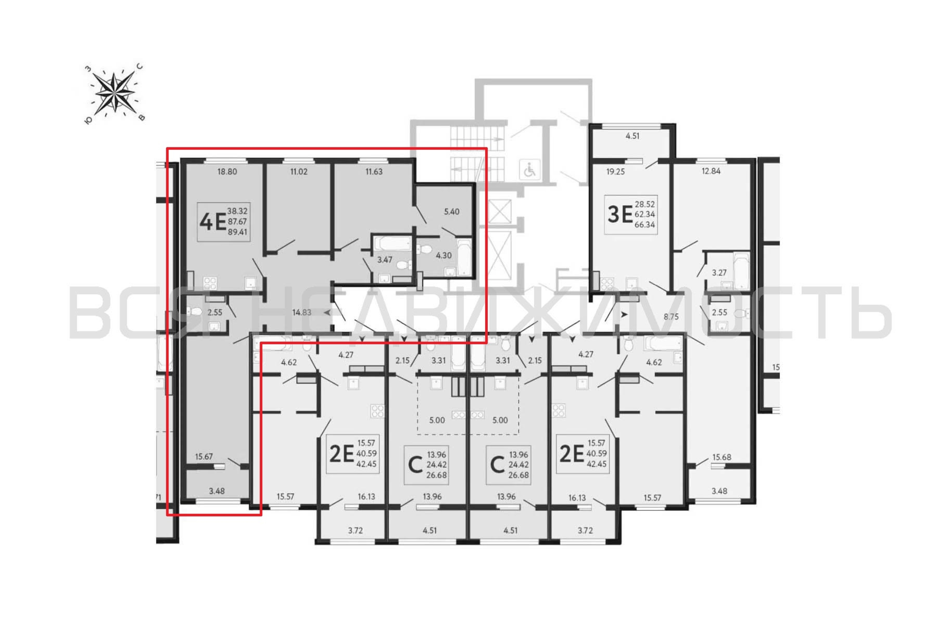 3-комнатная квартира, 89.41 м² 13/14 этаж ID объекта 100114218