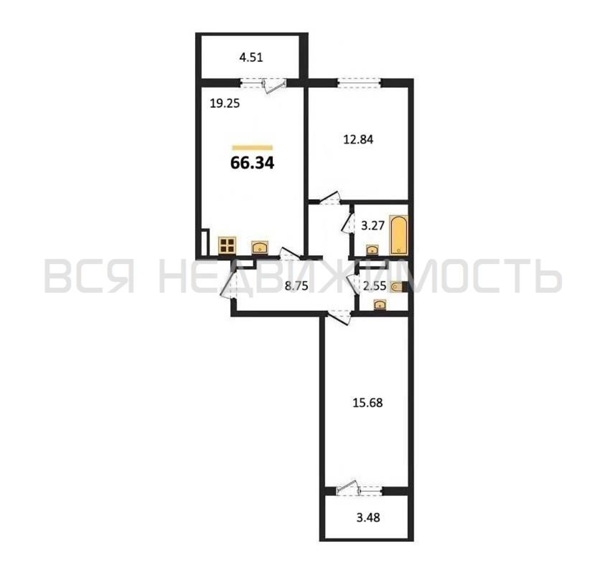2-комнатная квартира, 66.34 м² 13/14 этаж ID объекта 100114220