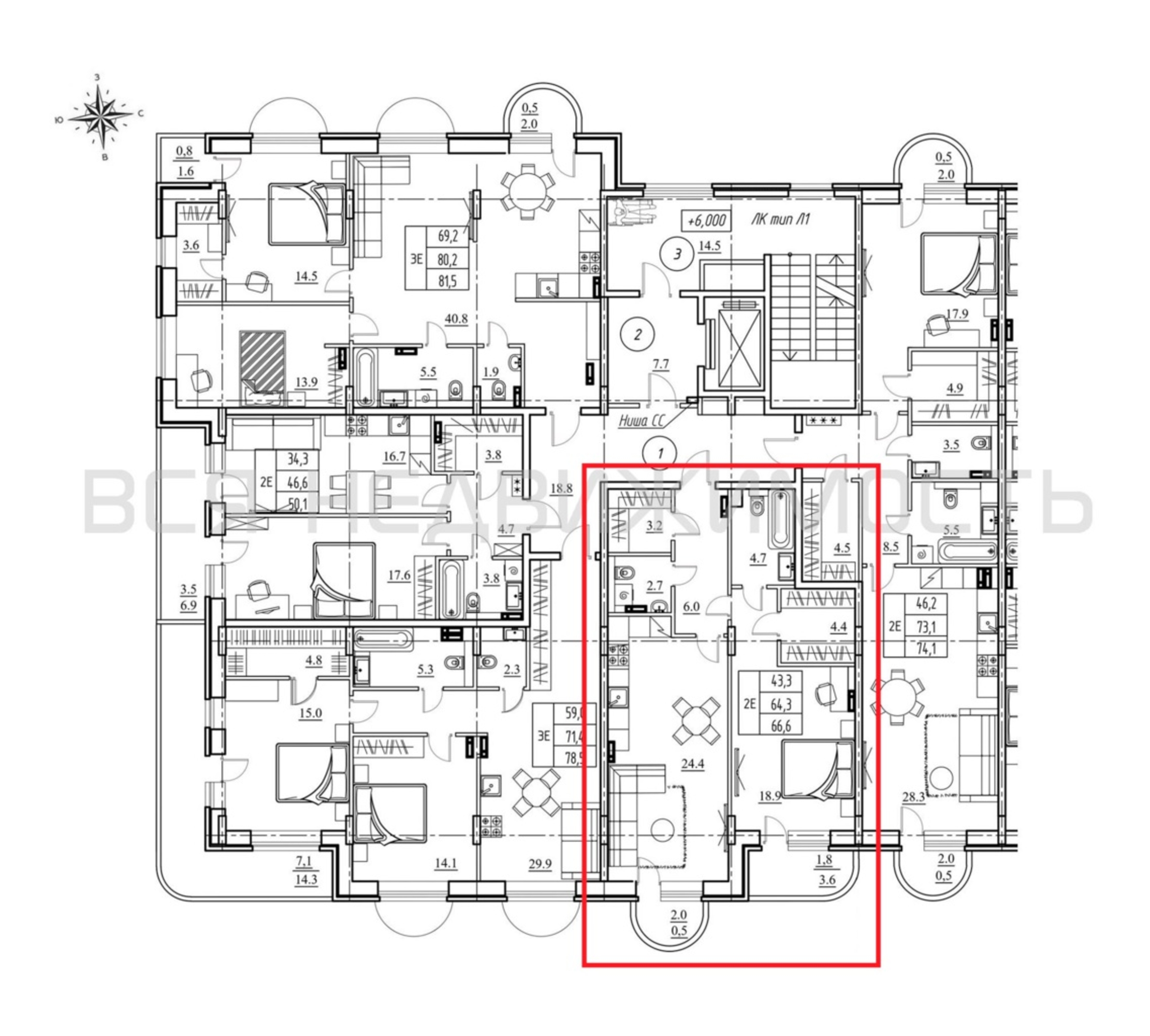 2-комнатная квартира, 66.90 м² 2/5 этаж ID объекта 100114222