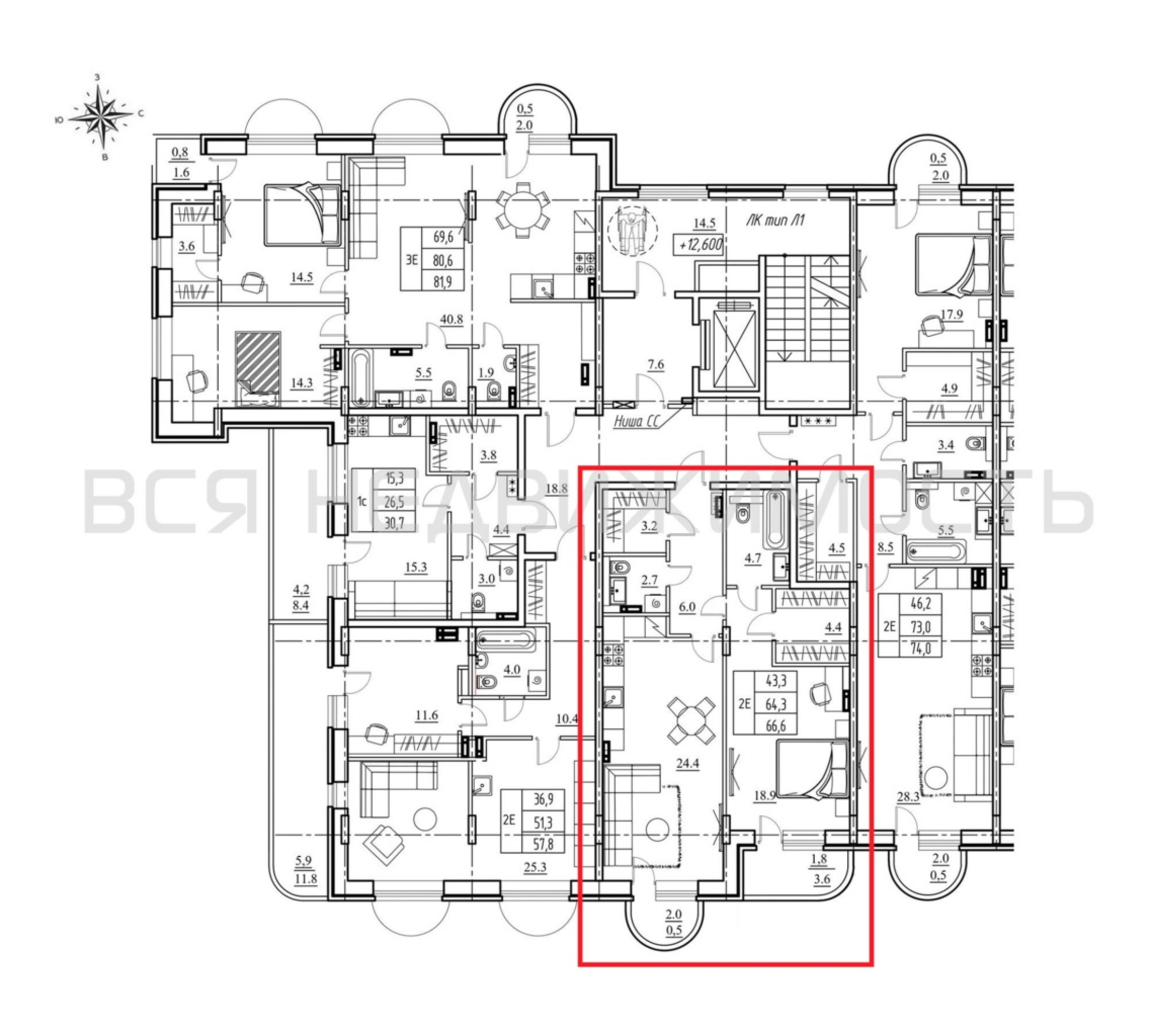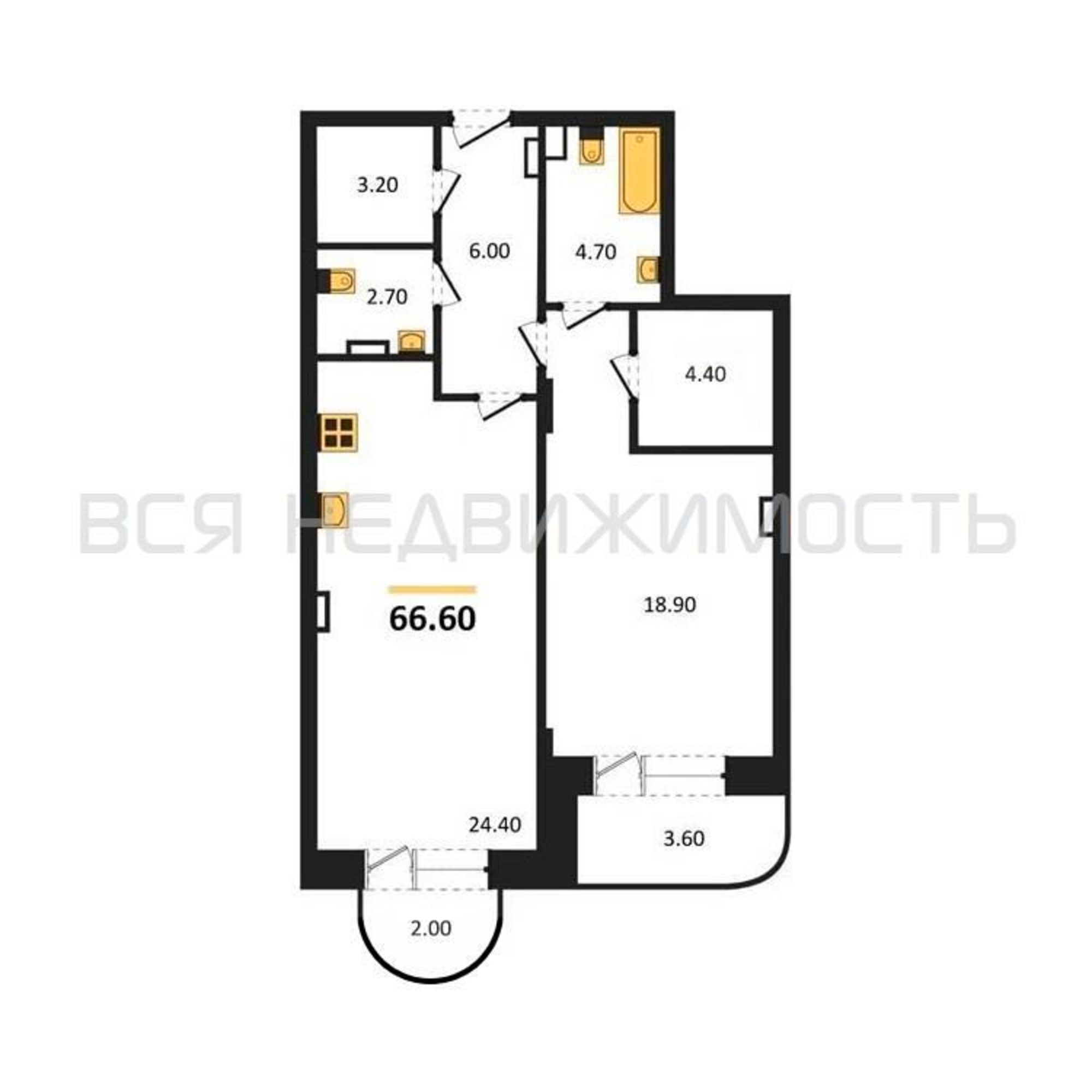 2-комнатная квартира, 66.60 м² 4/5 этаж ID объекта 100114227