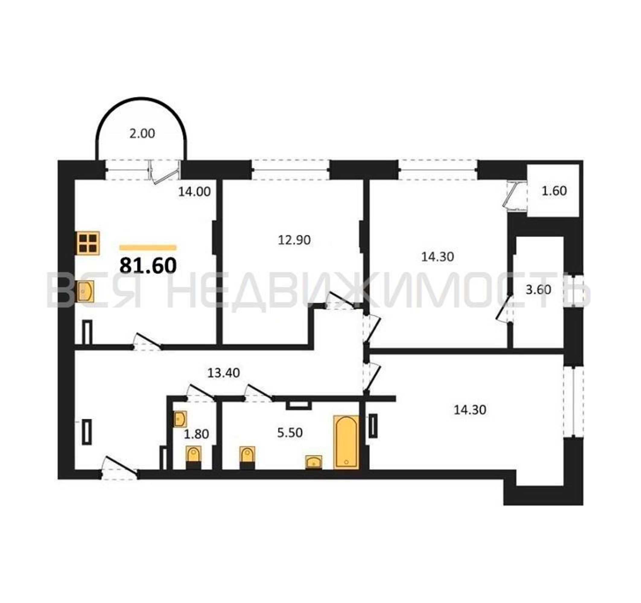 3-комнатная квартира, 81.60 м² 3/5 этаж ID объекта 100114232