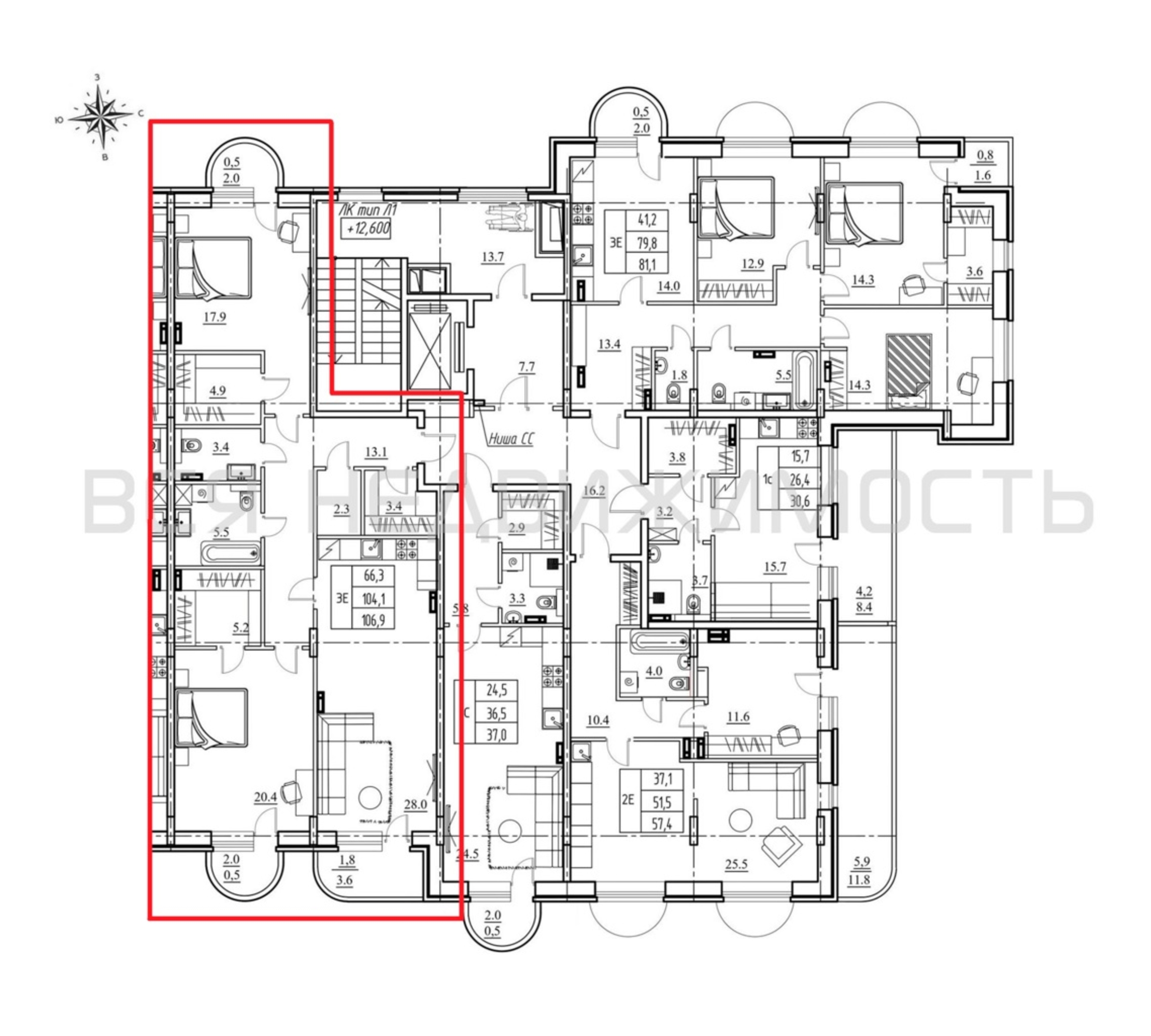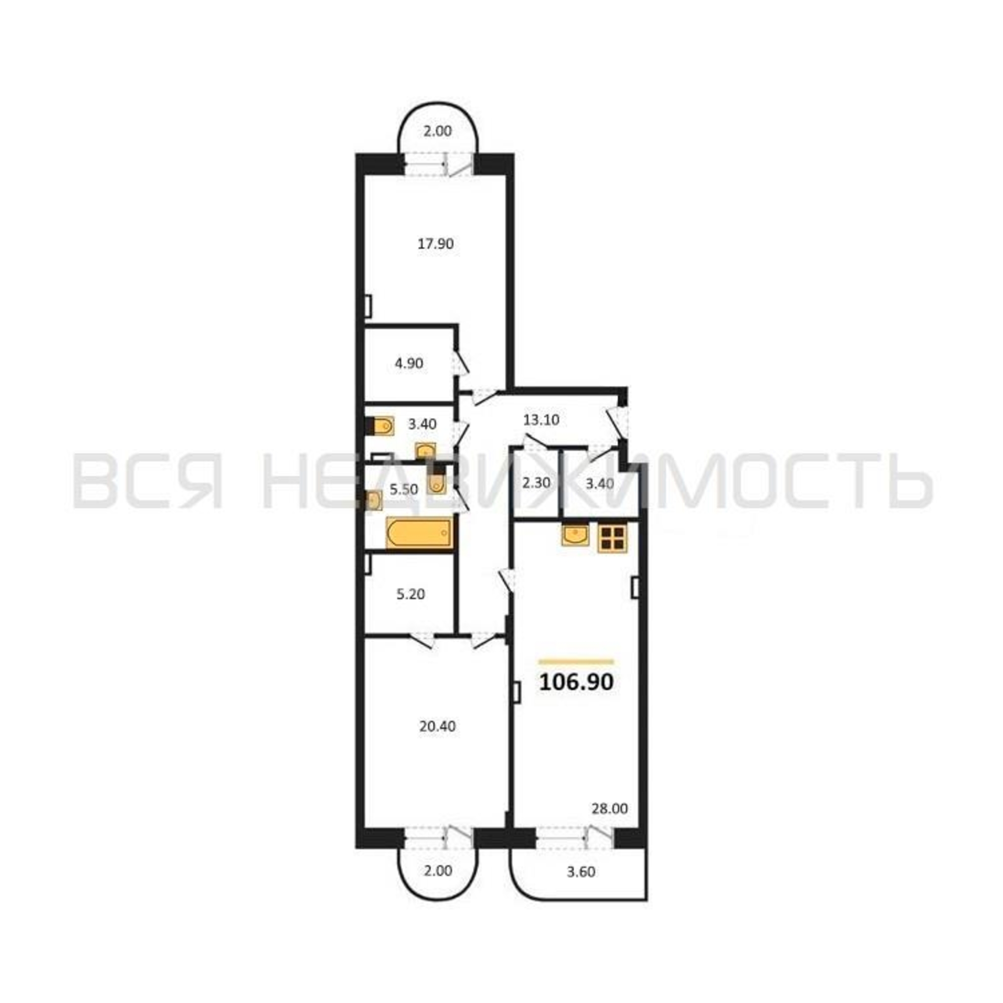 3-комнатная квартира, 106.90 м² 4/5 этаж ID объекта 100114236