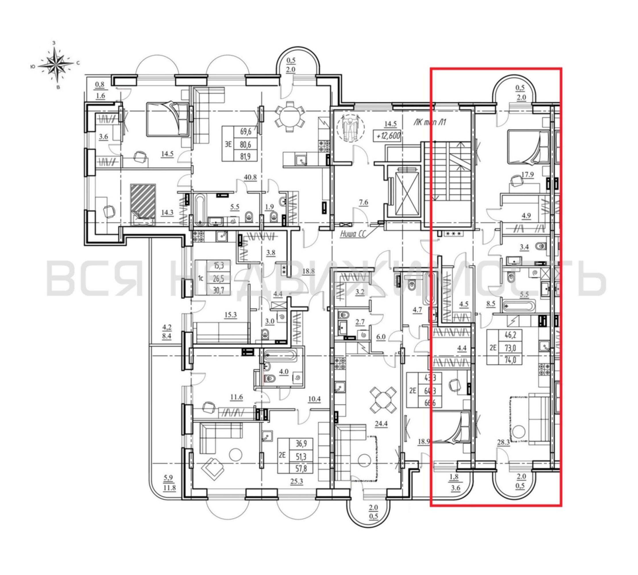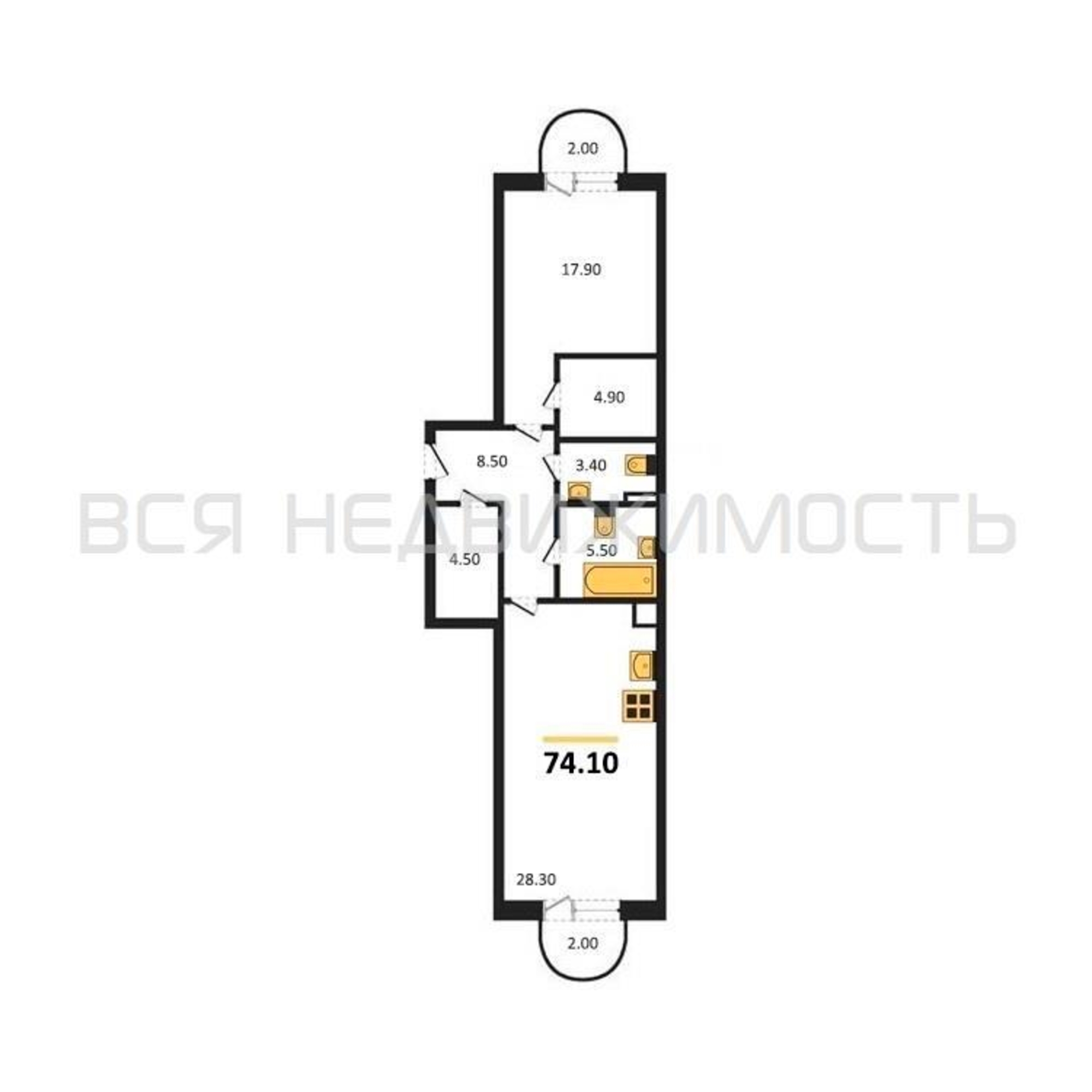 2-комнатная квартира, 74.10 м² 4/5 этаж ID объекта 100114310
