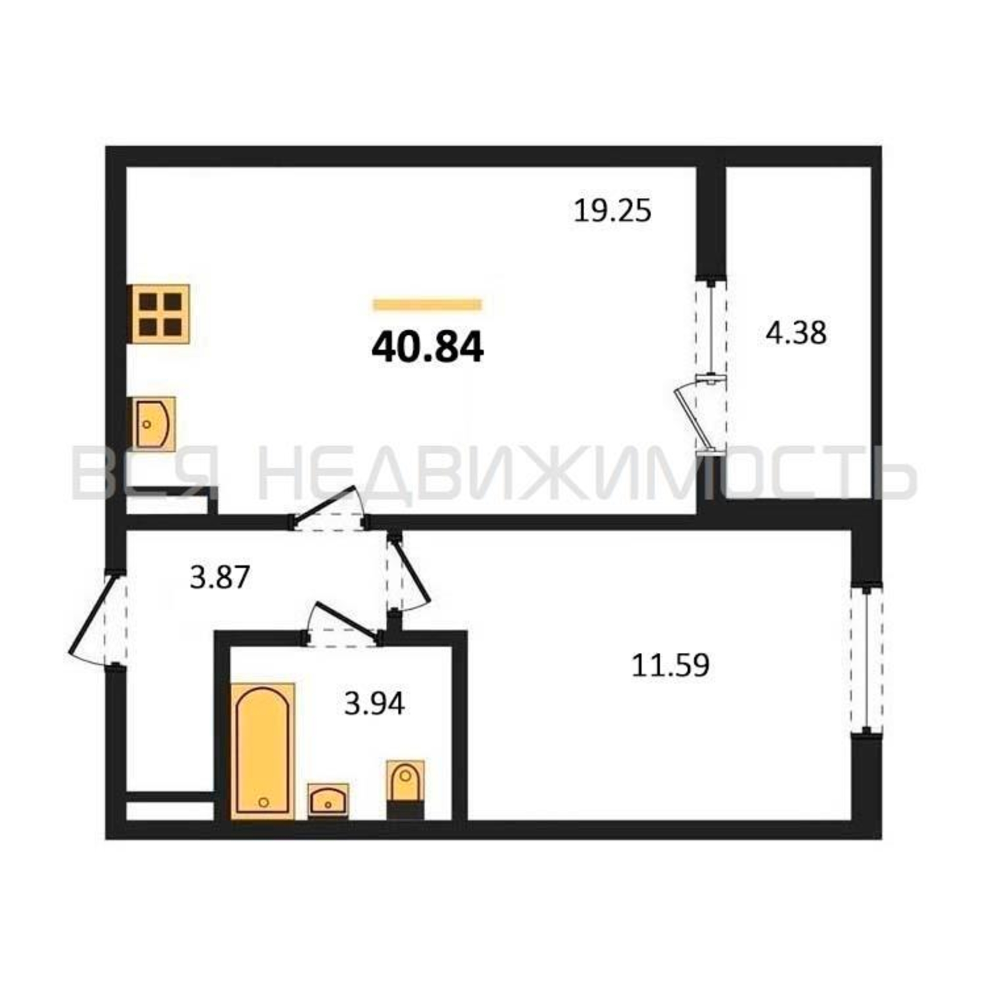1-комнатная квартира, 40.84 м² 8/10 этаж ID объекта 100114340
