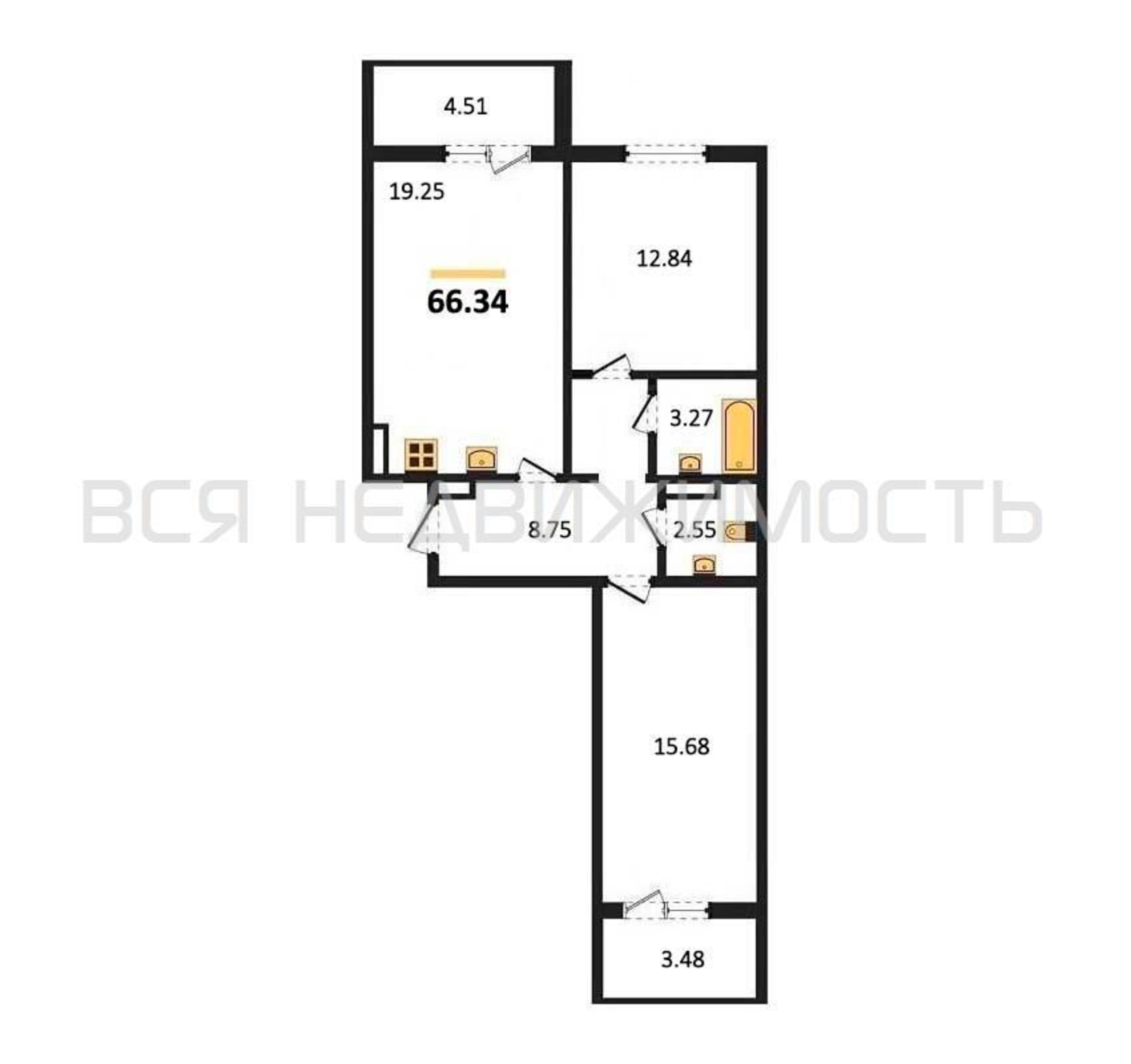 2-комнатная квартира, 66.34 м² 8/14 этаж ID объекта 100114370