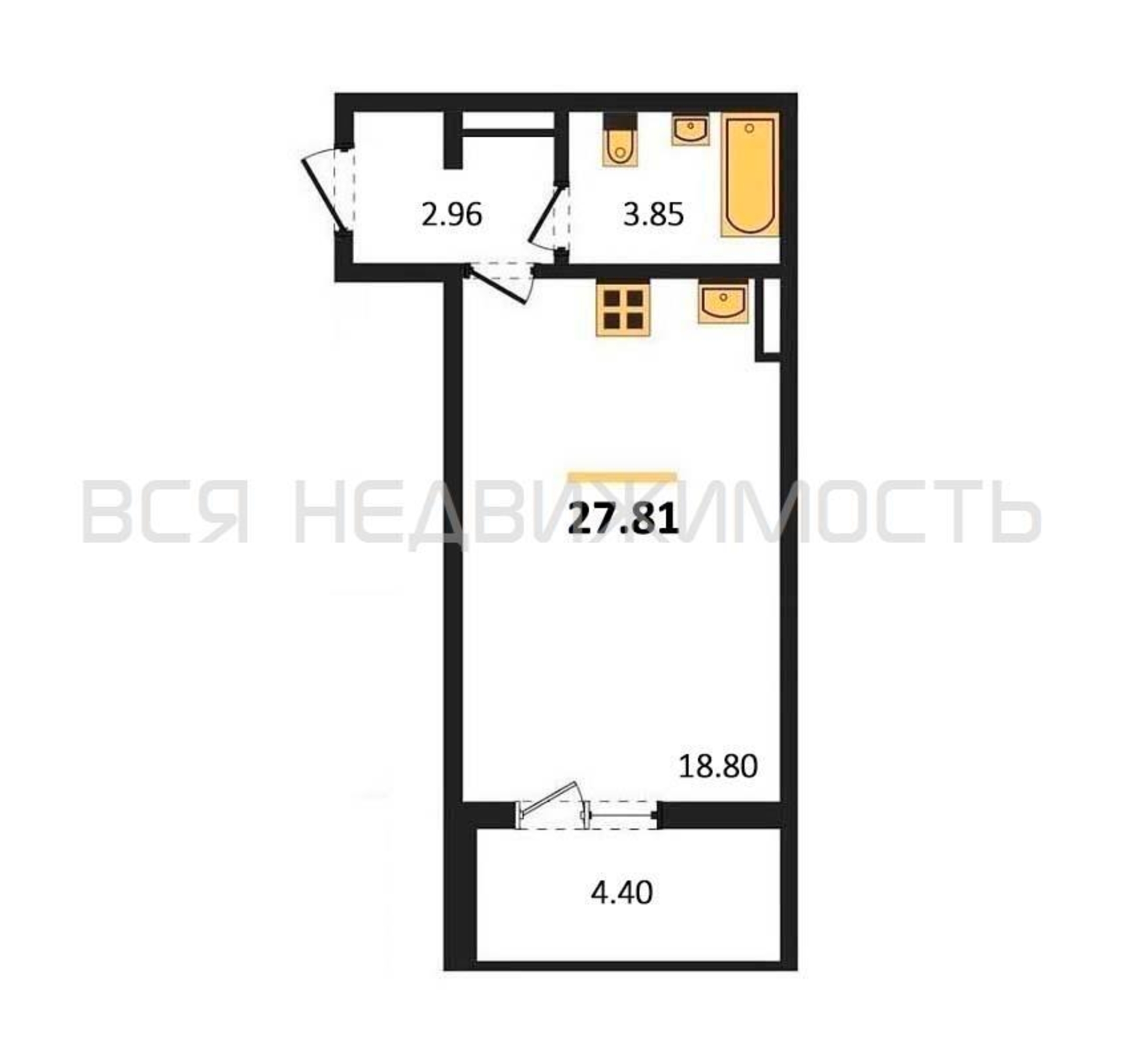 Квартиры-студии, 27.81 м² 8/12 этаж ID объекта 100114411