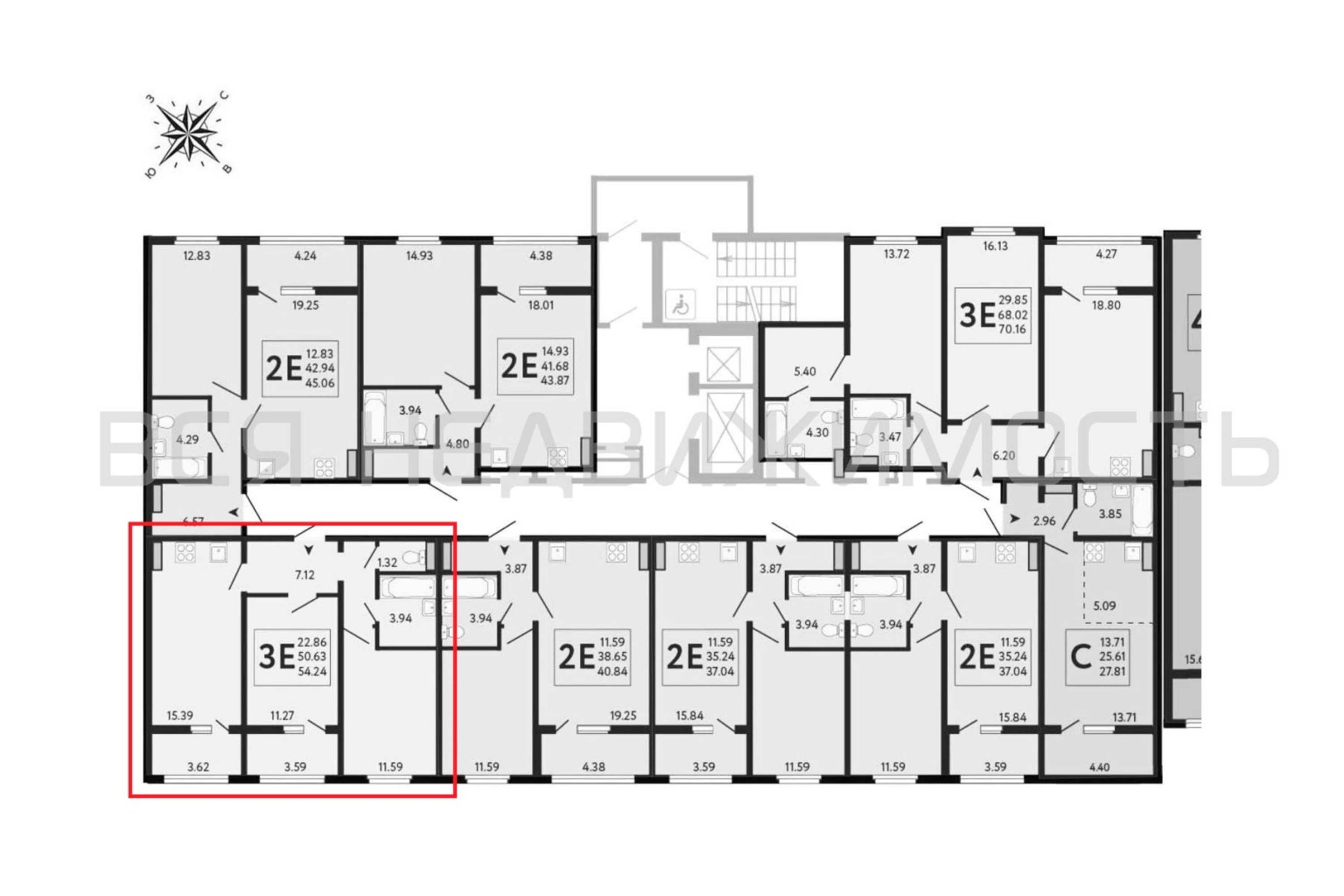 2-комнатная квартира, 54.24 м² 8/12 этаж ID объекта 100114415