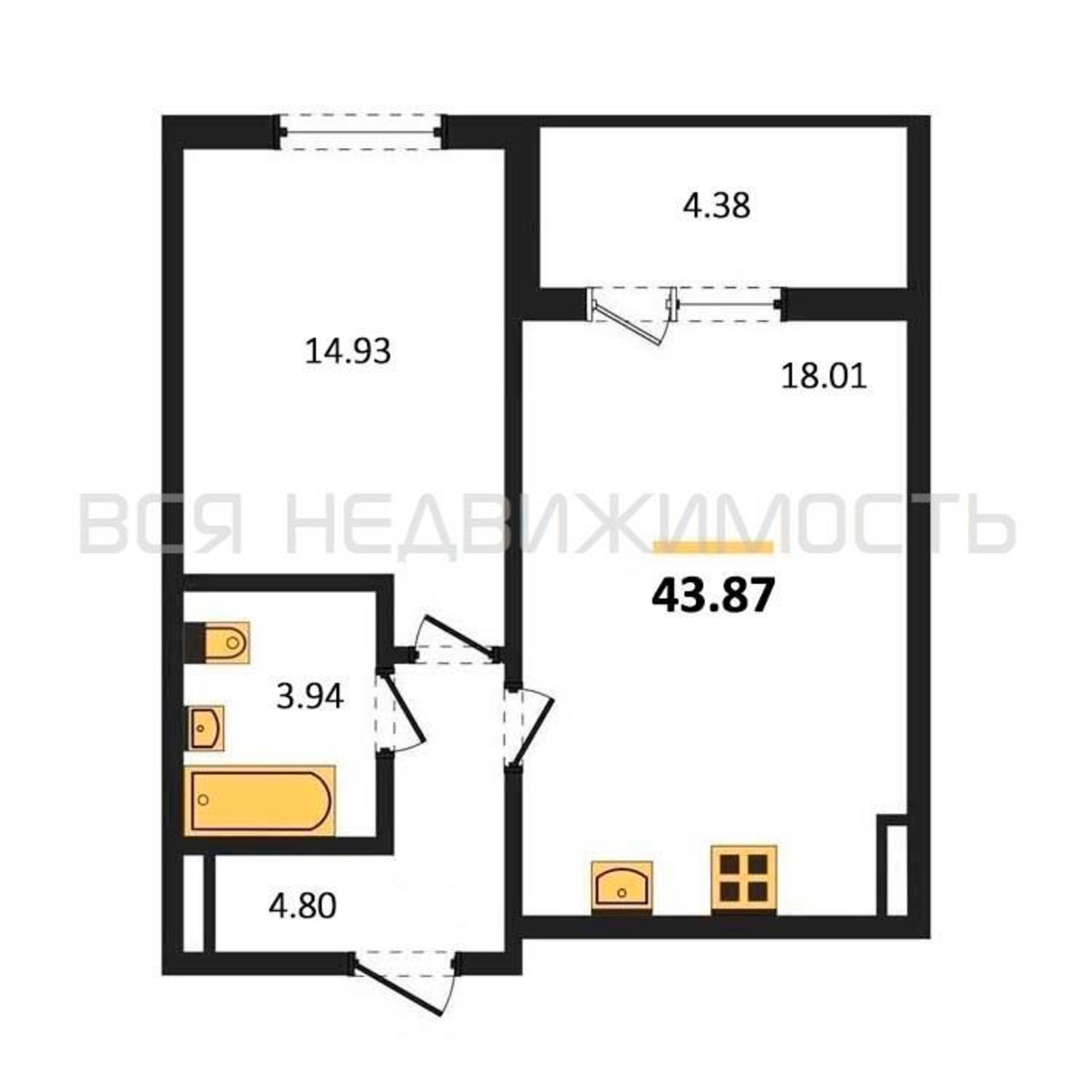 Строительная площадь43.87 м²