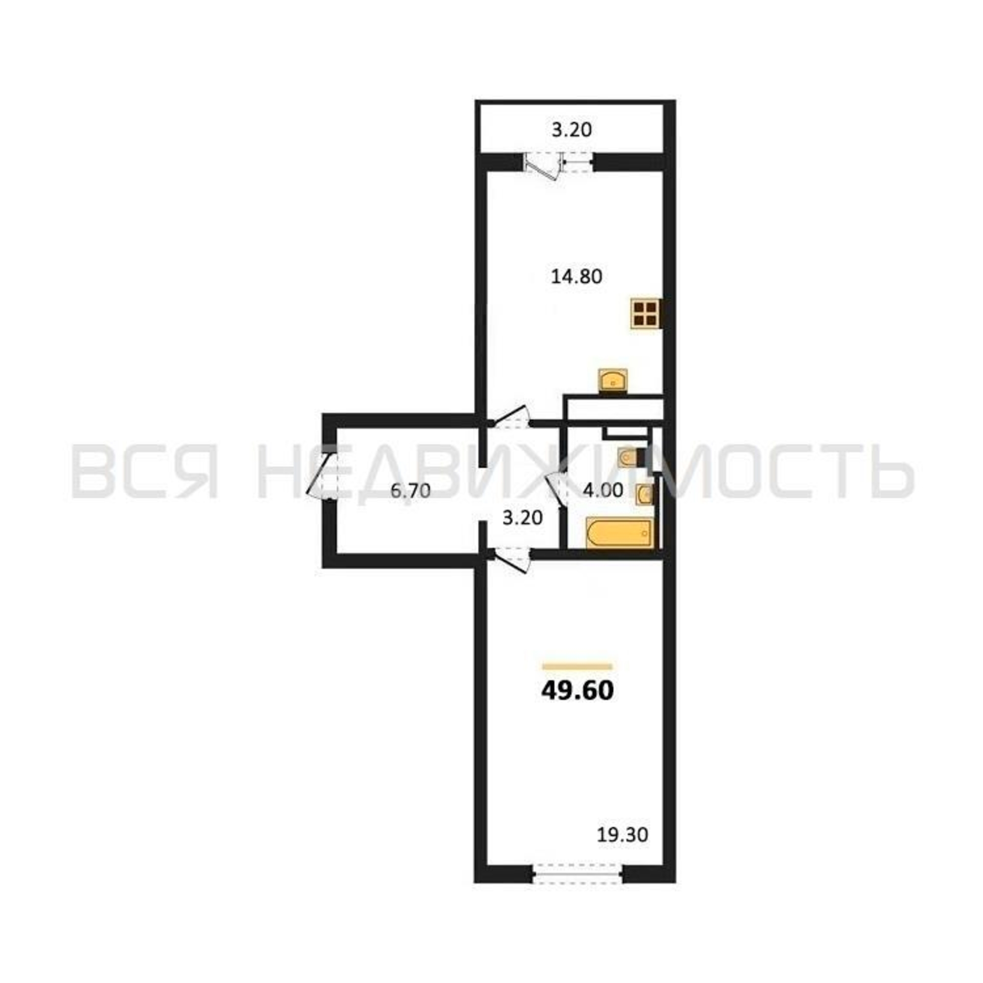 1-комнатная квартира, 49.60 м² 17/19 этаж ID объекта 100115286