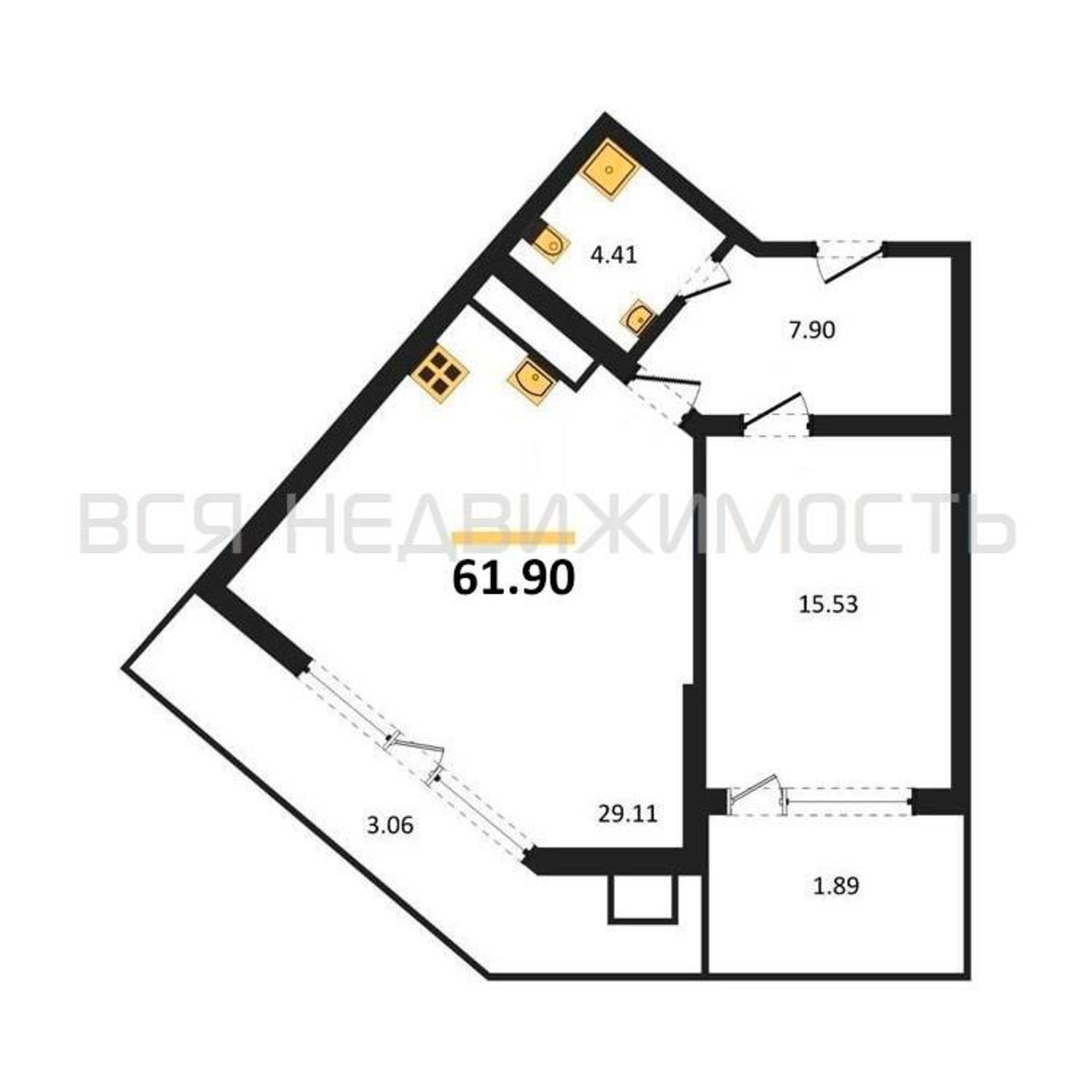 Строительная площадь61.90 м²