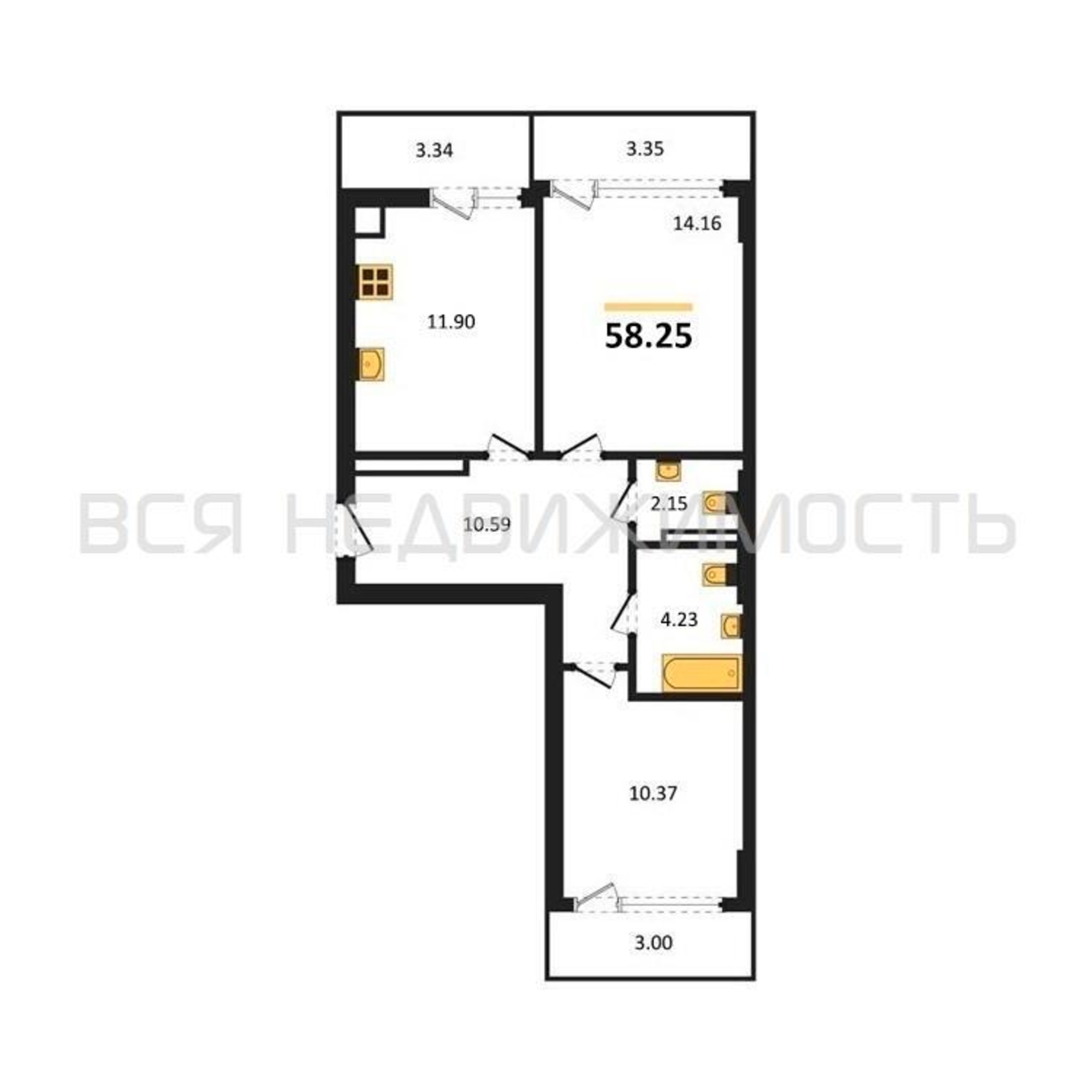 Строительная площадь58.25 м²