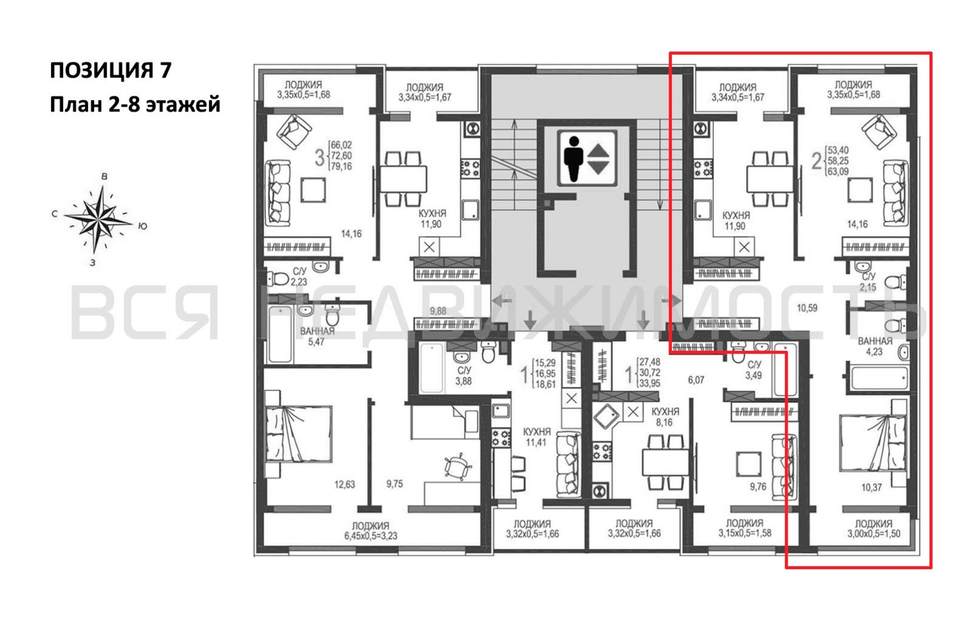 2-комнатная квартира, 58.25 м² 7/8 этаж ID объекта 100116168