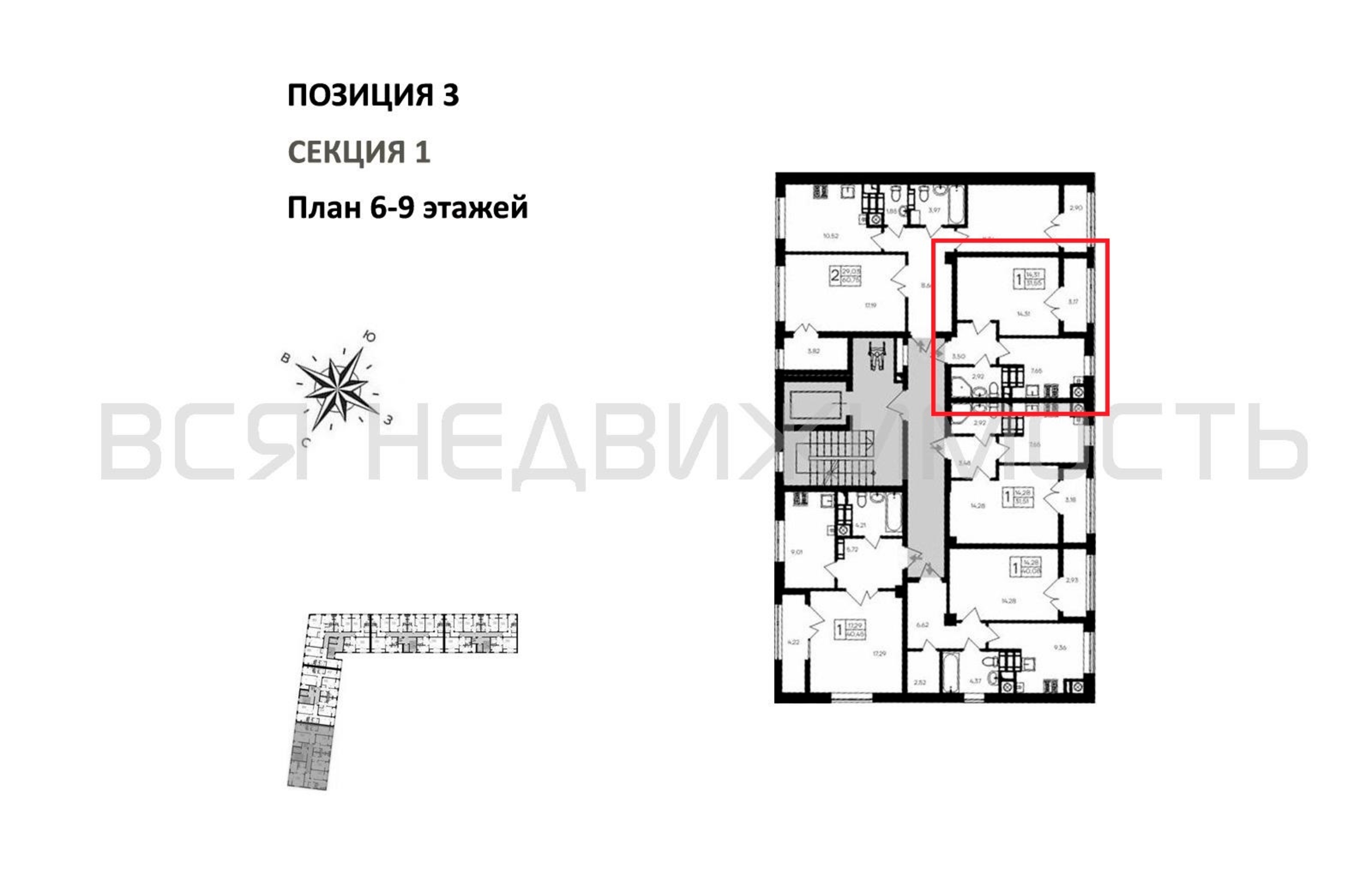 1-комнатная квартира, 31.55 м² 9/9 этаж ID объекта 100116678