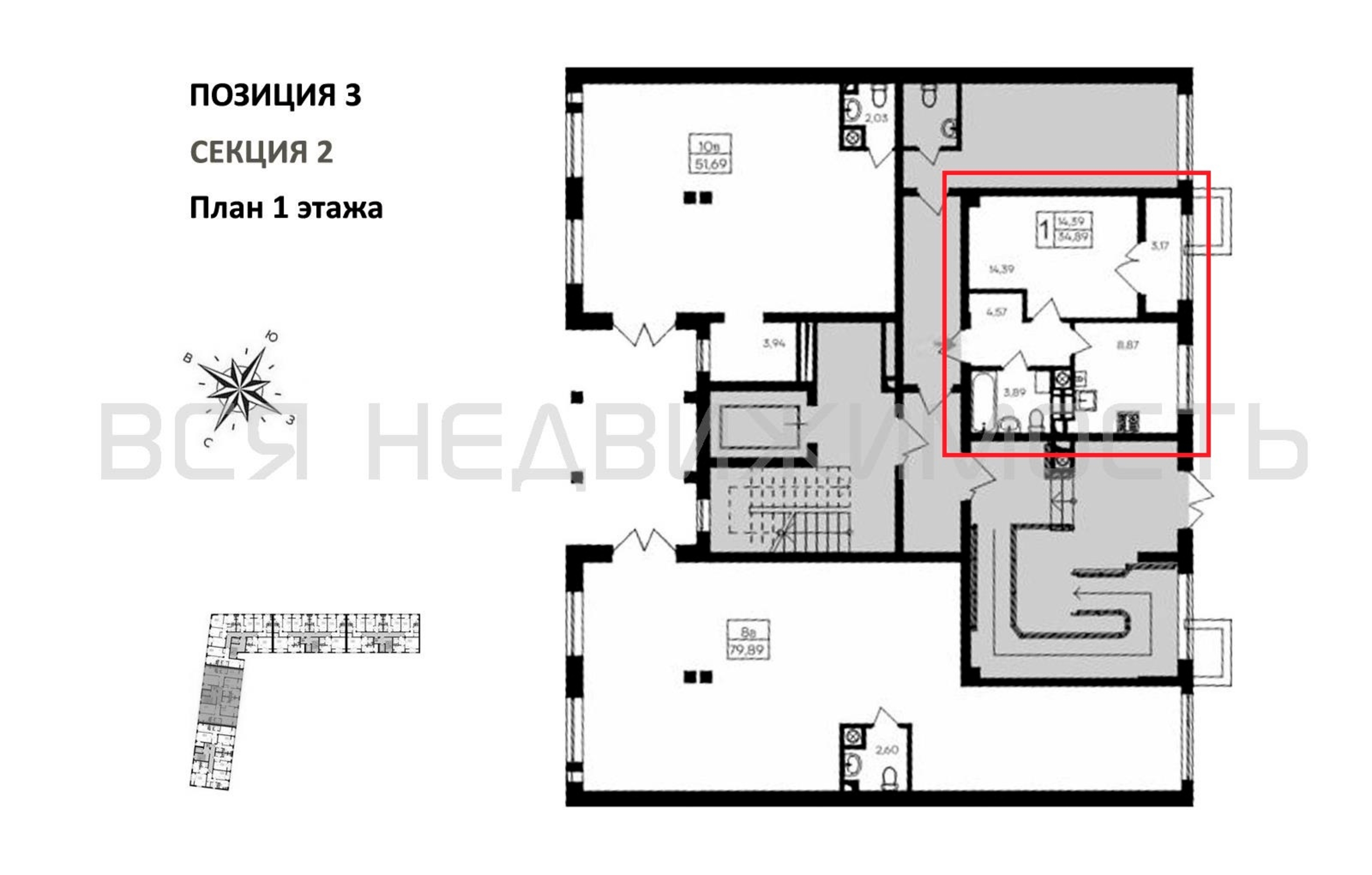 1-комнатная квартира, 34.89 м² 1/9 этаж ID объекта 100116682