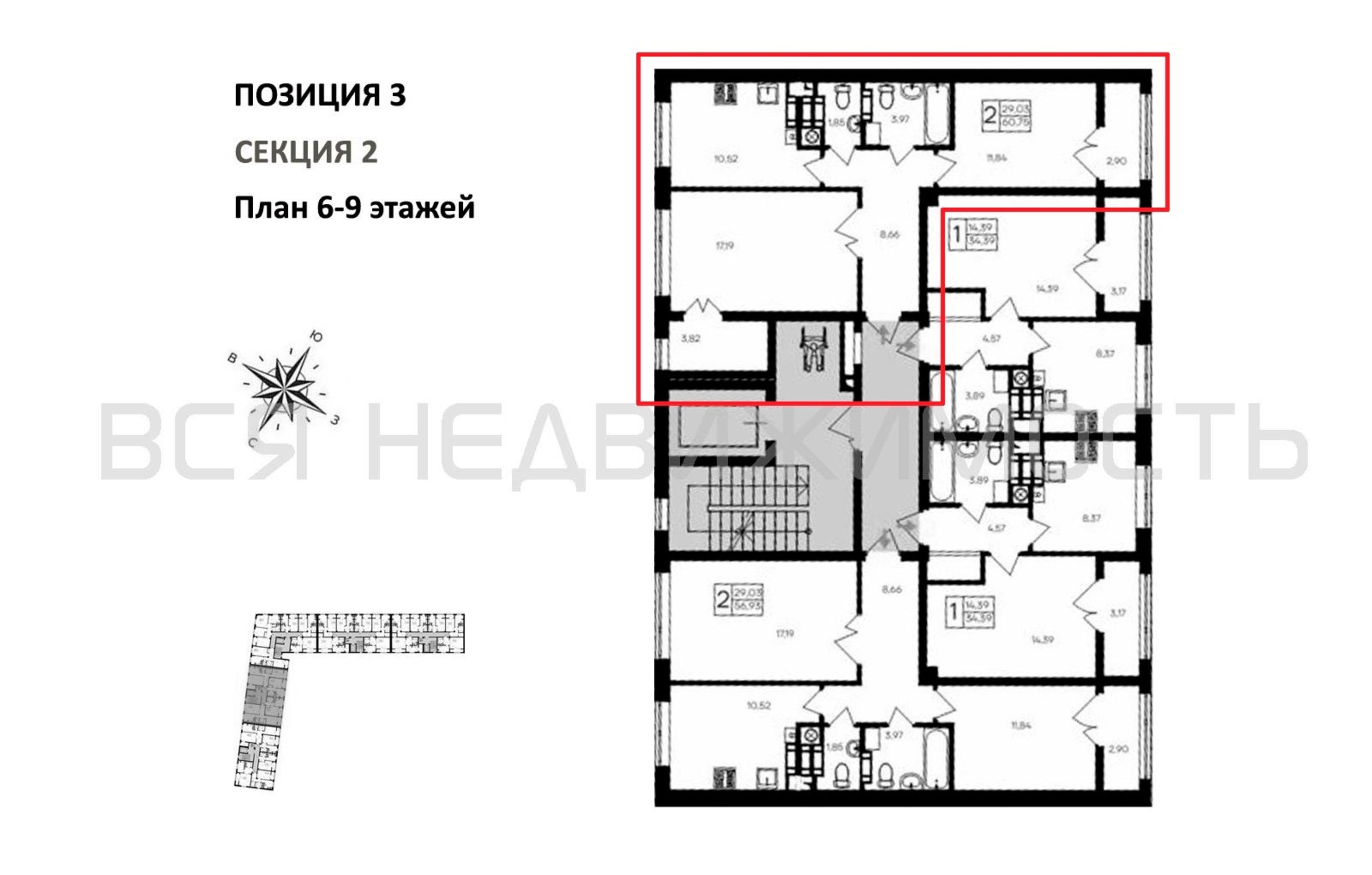 2-комнатная квартира, 60.75 м² 8/9 этаж ID объекта 100116707