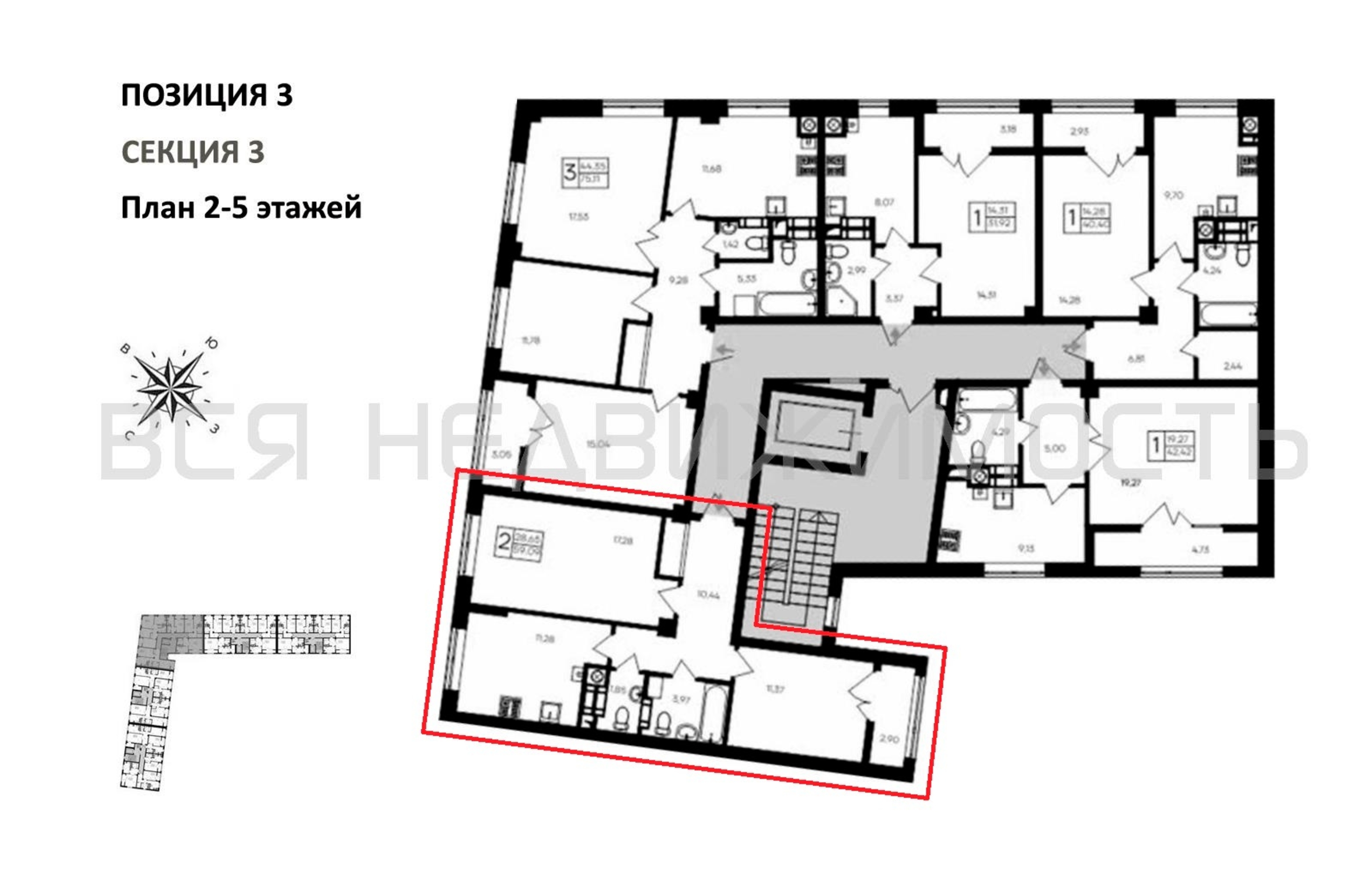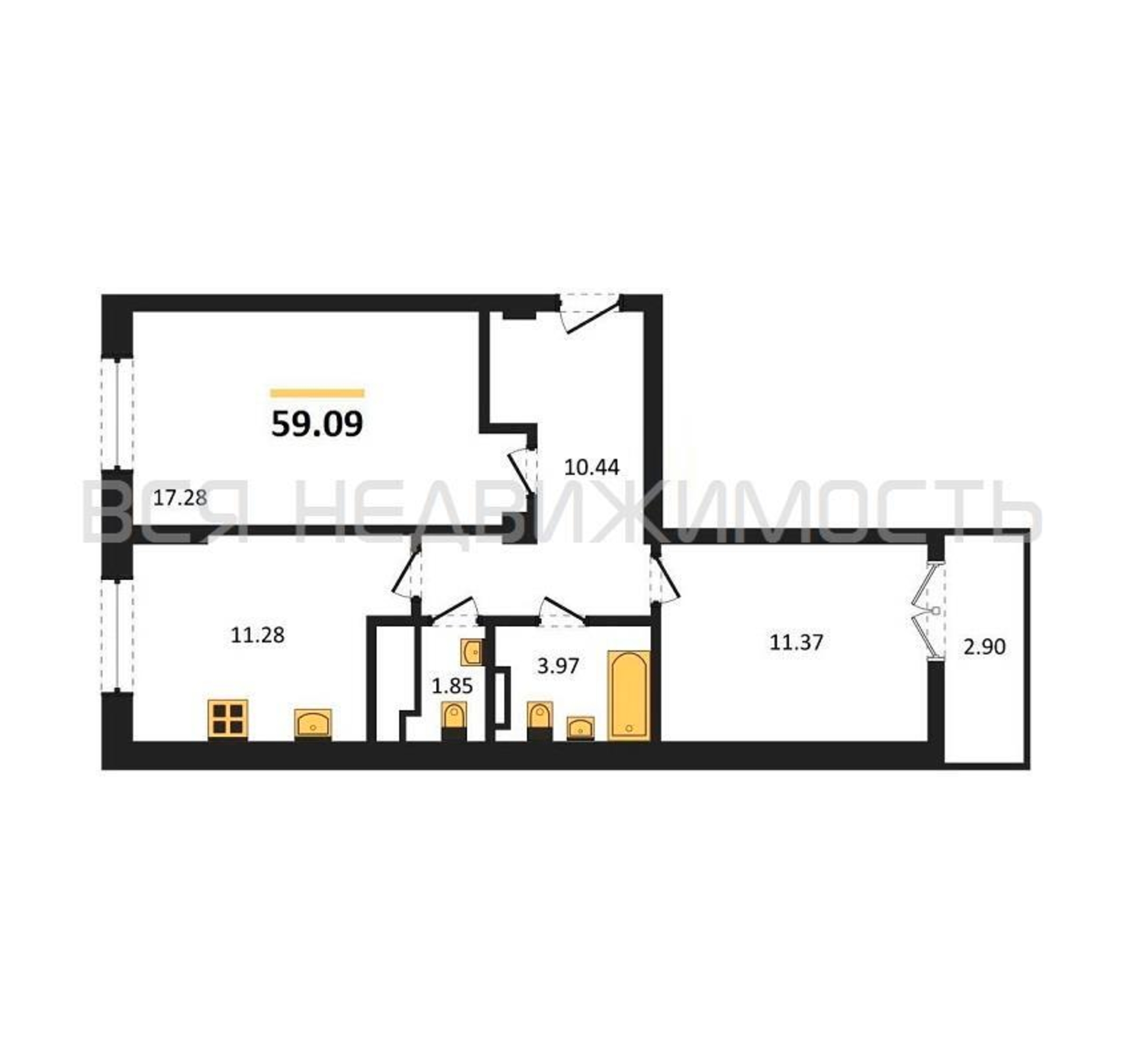 2-комнатная квартира, 59.09 м² 3/9 этаж ID объекта 100116720