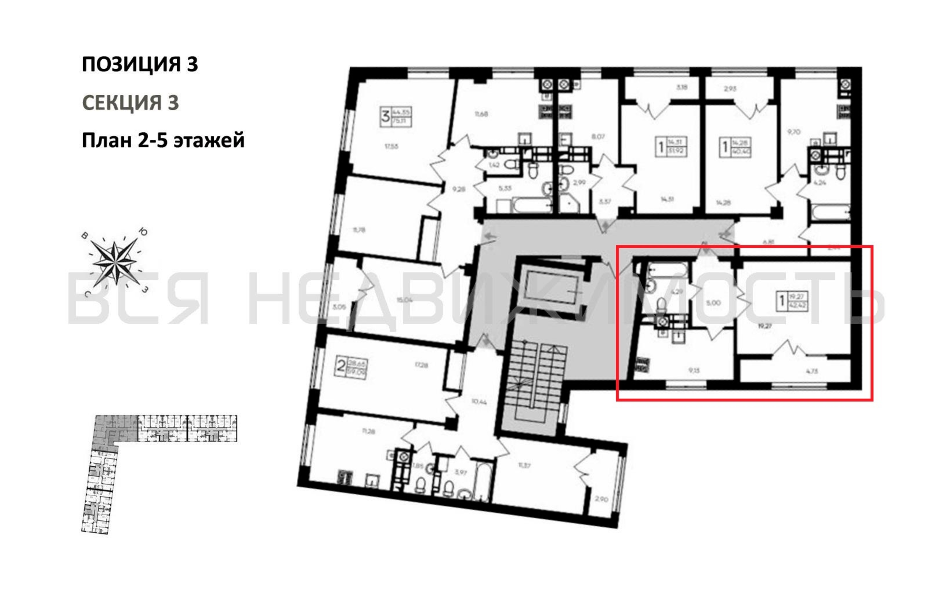 1-комнатная квартира, 42.42 м² 5/9 этаж ID объекта 100116734