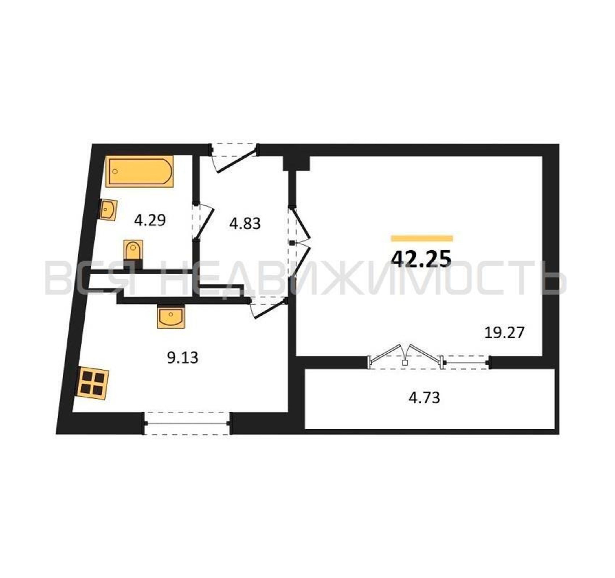1-комнатная квартира, 42.25 м² 6/9 этаж ID объекта 100116739
