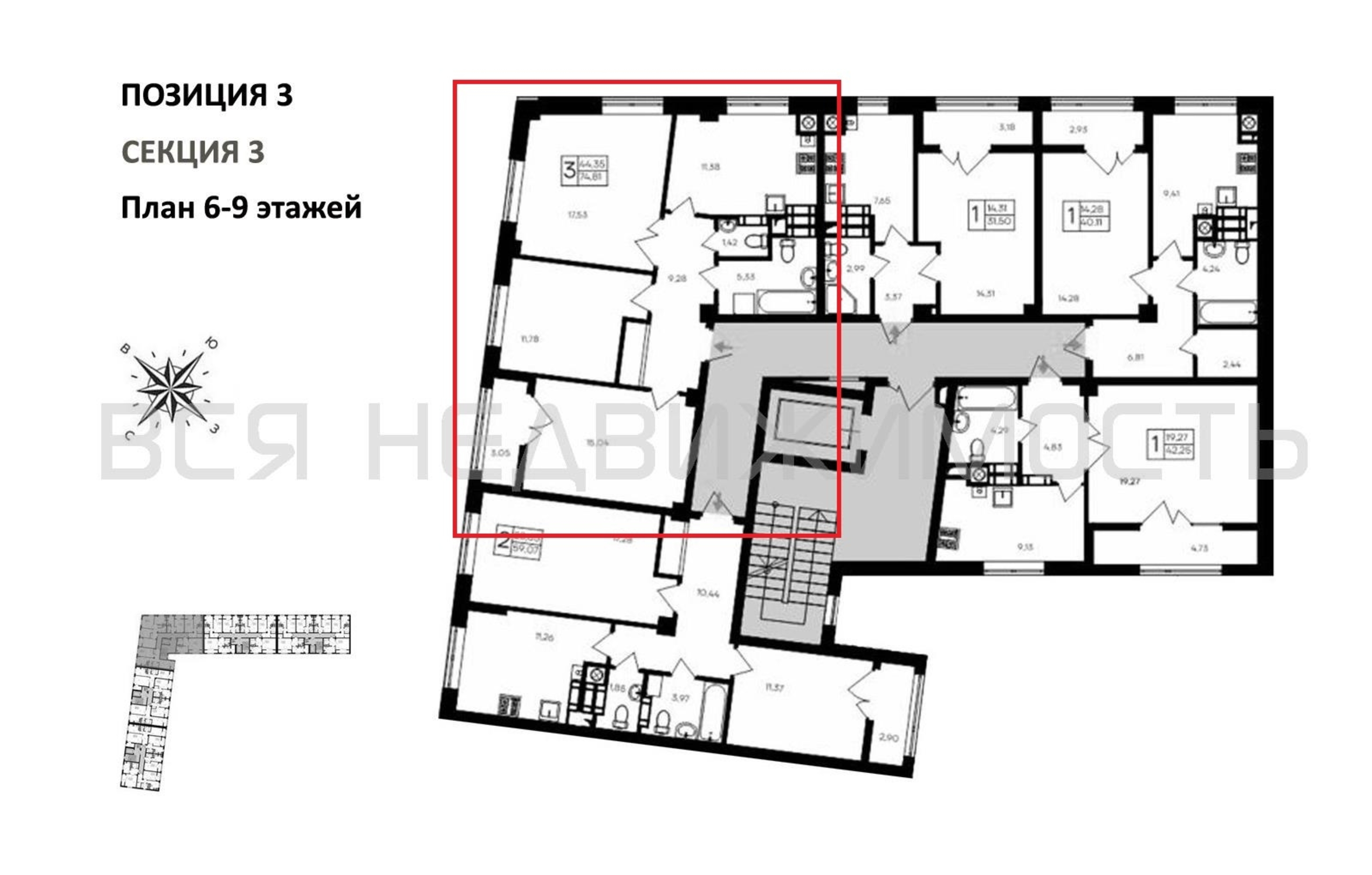 3-комнатная квартира, 74.81 м² 8/9 этаж ID объекта 100116746