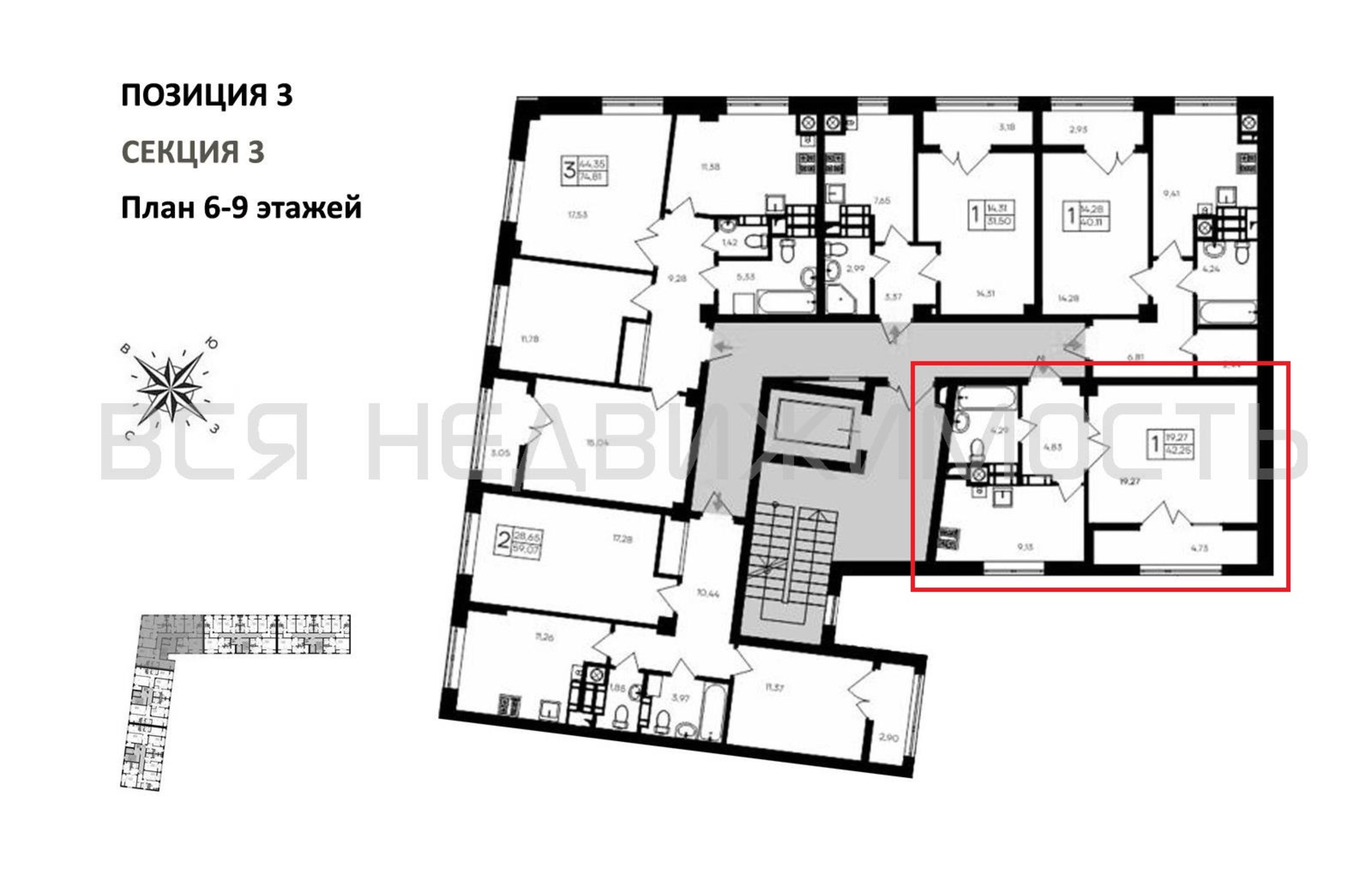 1-комнатная квартира, 42.25 м² 8/9 этаж ID объекта 100116749