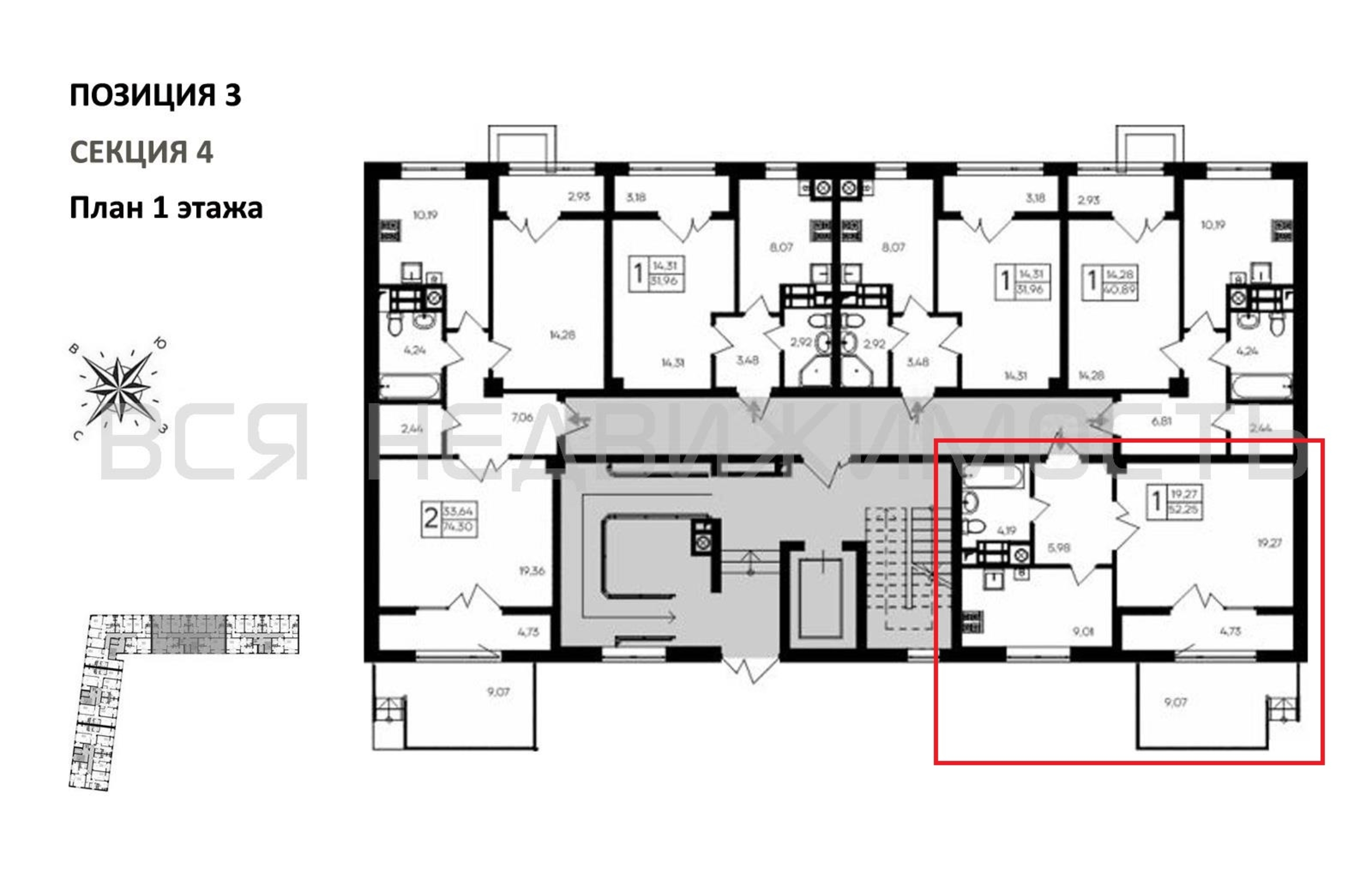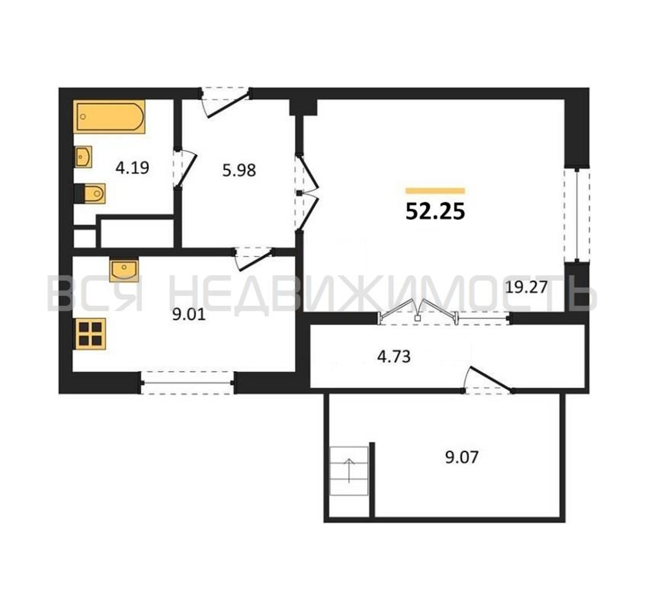 1-комнатная квартира, 52.25 м² 1/9 этаж ID объекта 100116759