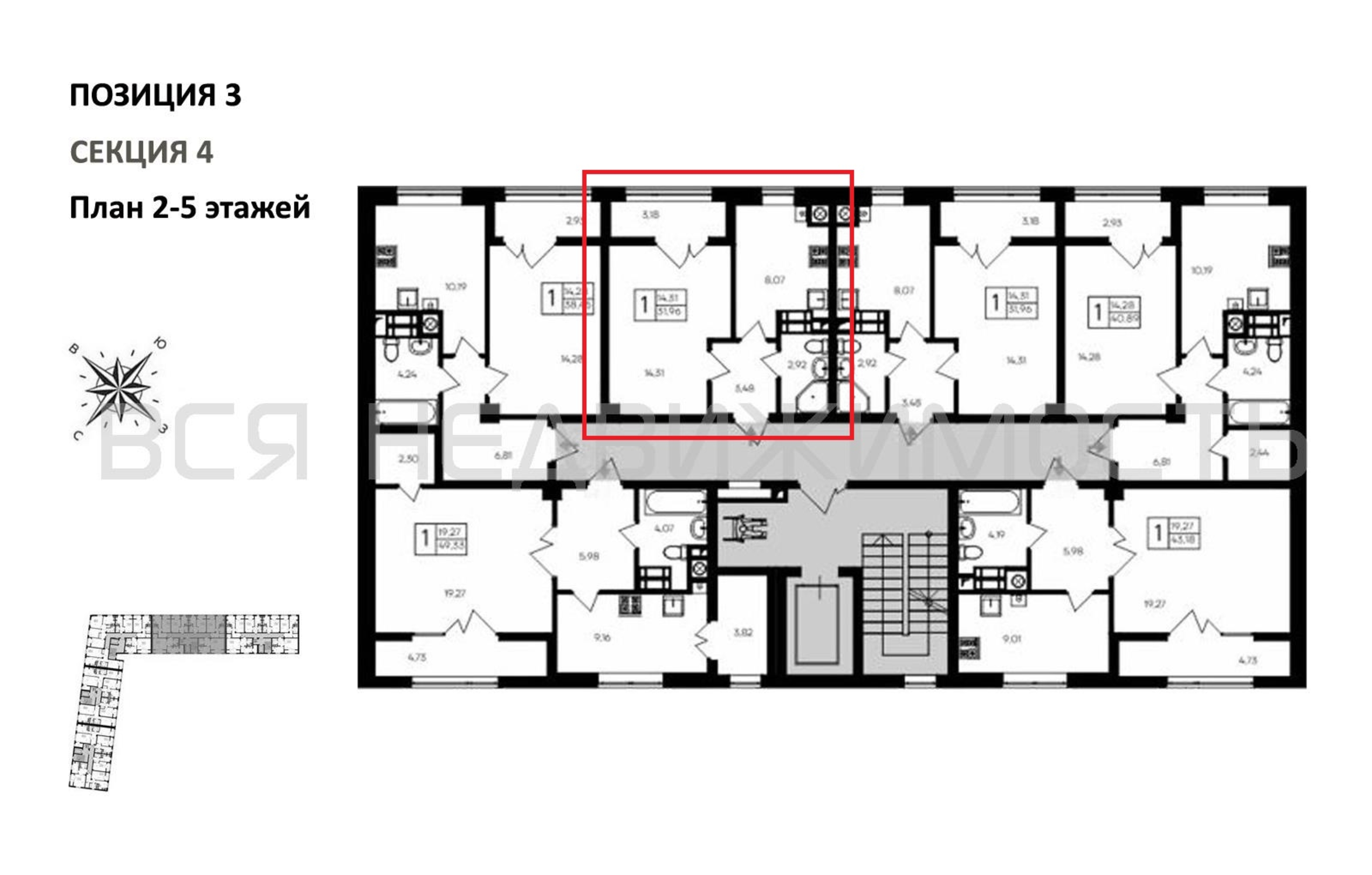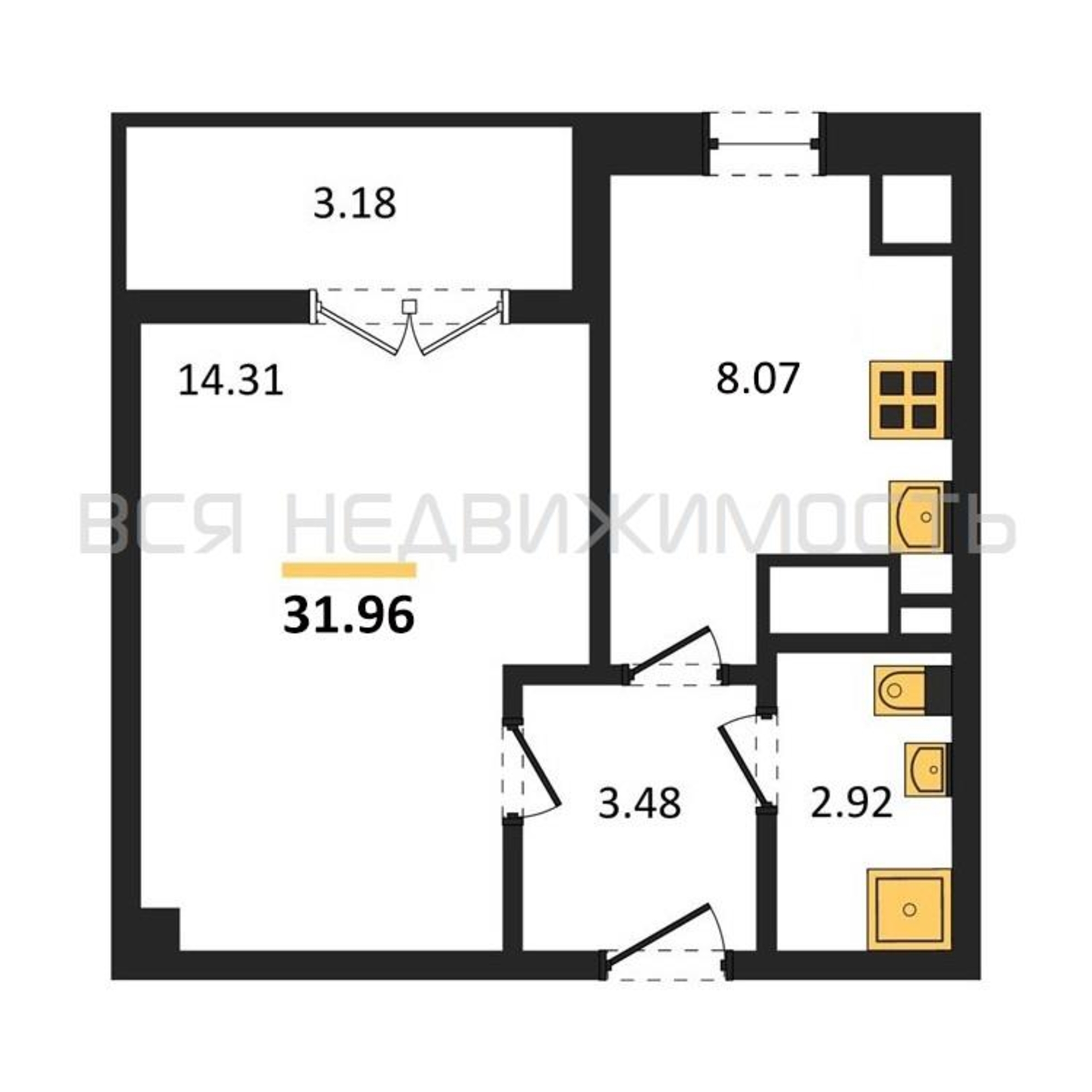 1-комнатная квартира, 31.96 м² 3/9 этаж ID объекта 100116768
