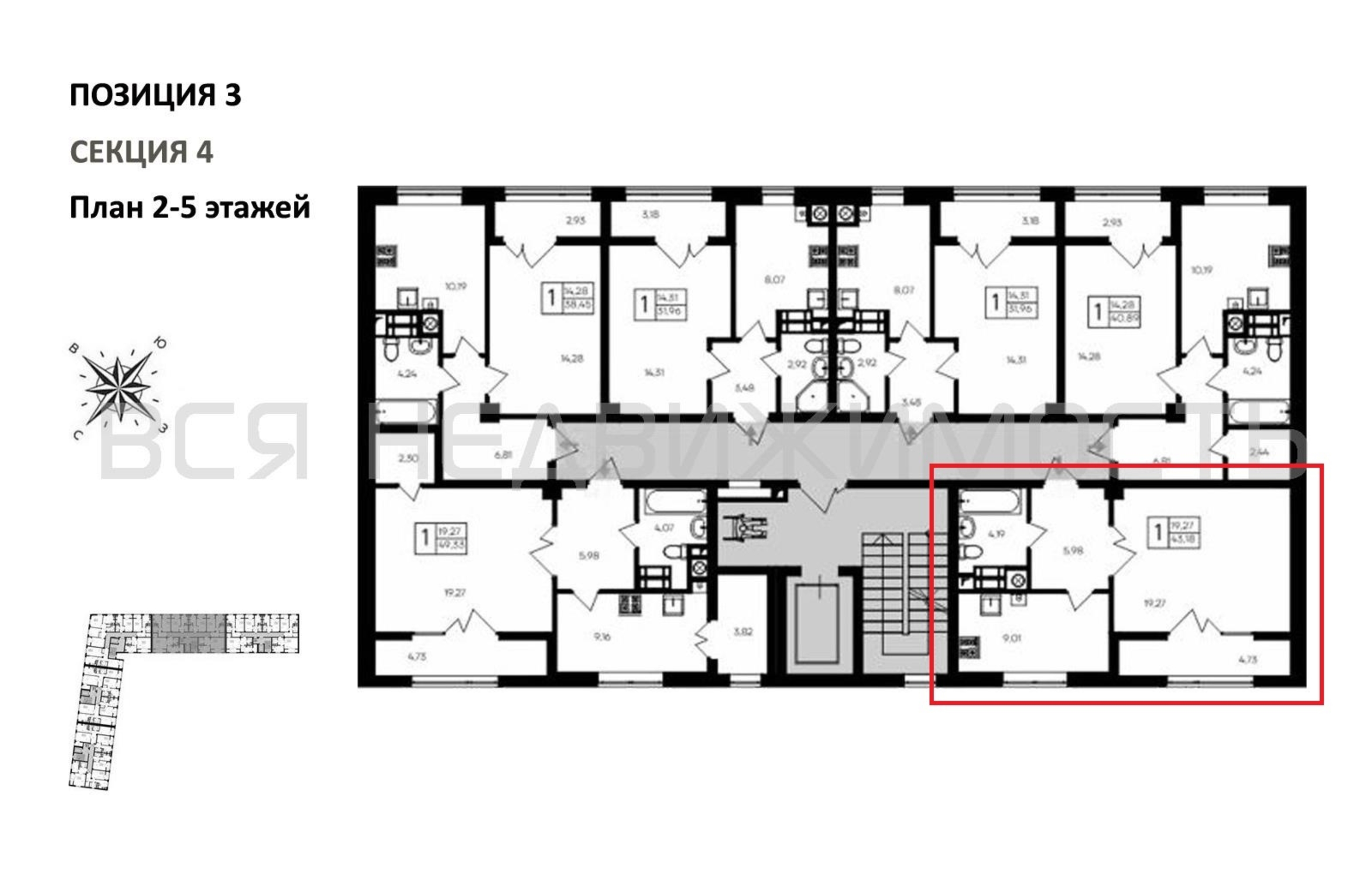 1-комнатная квартира, 43.18 м² 5/9 этаж ID объекта 100116783