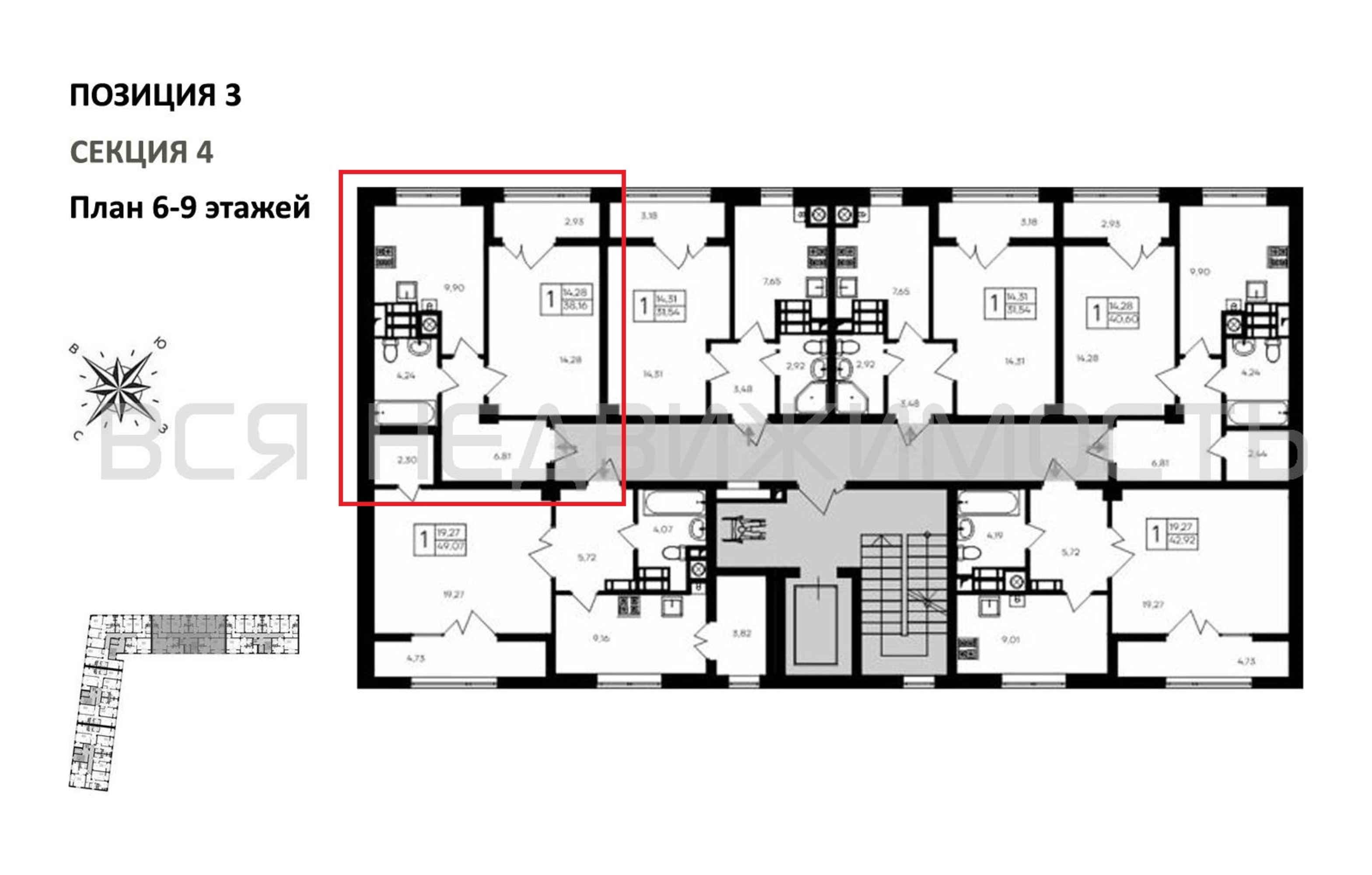 1-комнатная квартира, 38.16 м² 7/9 этаж ID объекта 100116791