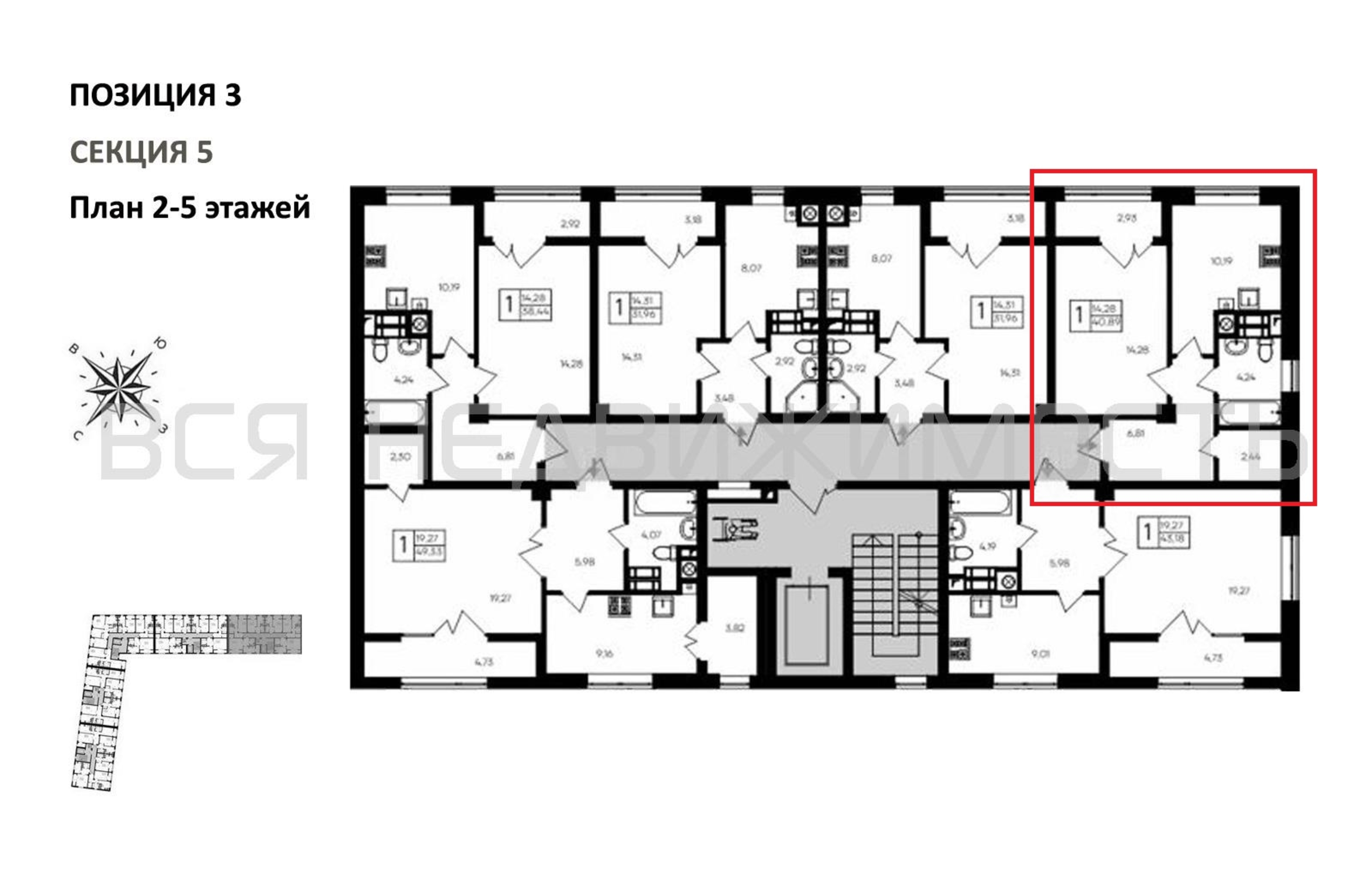 1-комнатная квартира, 40.89 м² 2/9 этаж ID объекта 100116817