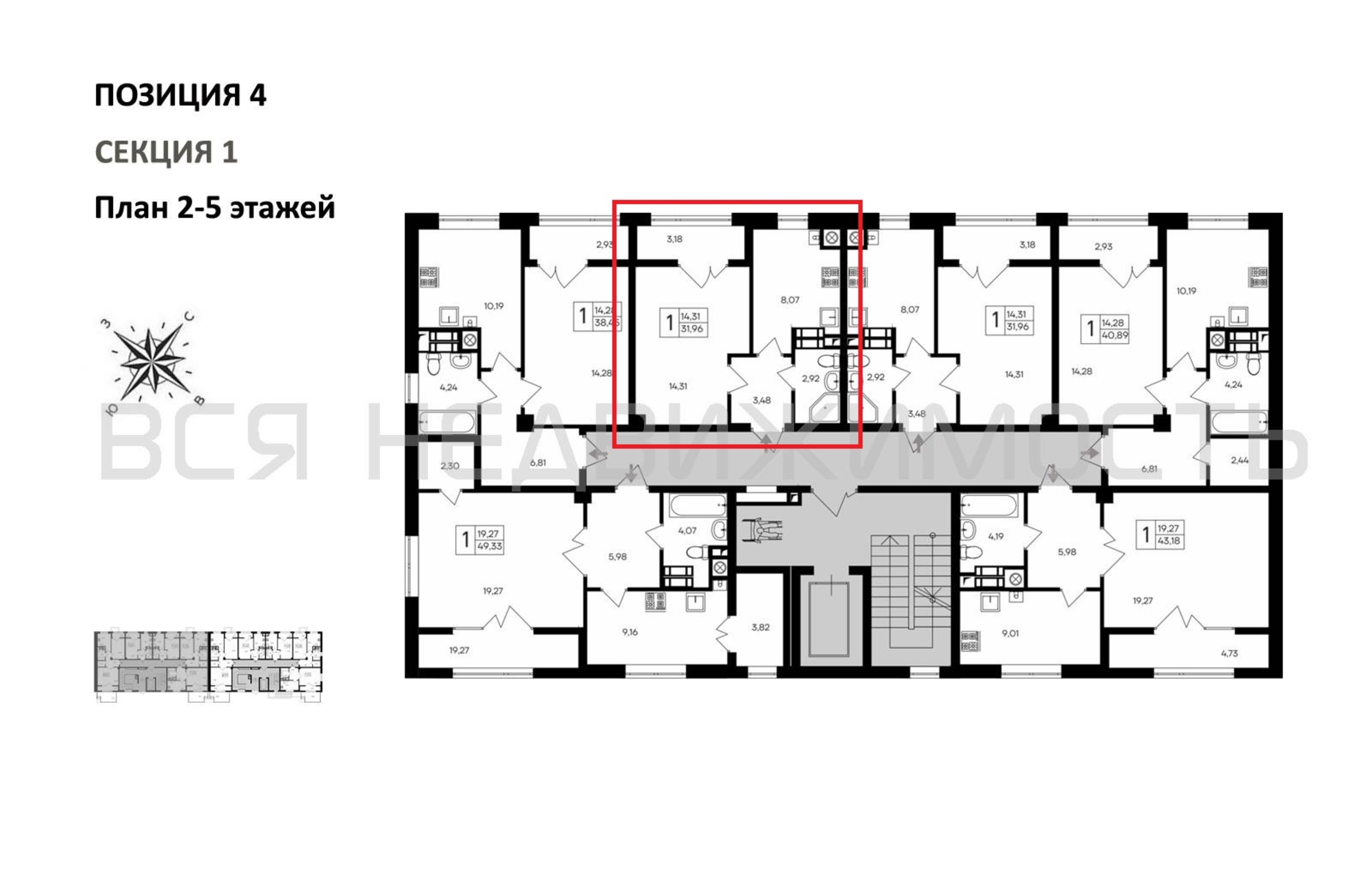 1-комнатная квартира, 31.96 м² 2/9 этаж ID объекта 100116868