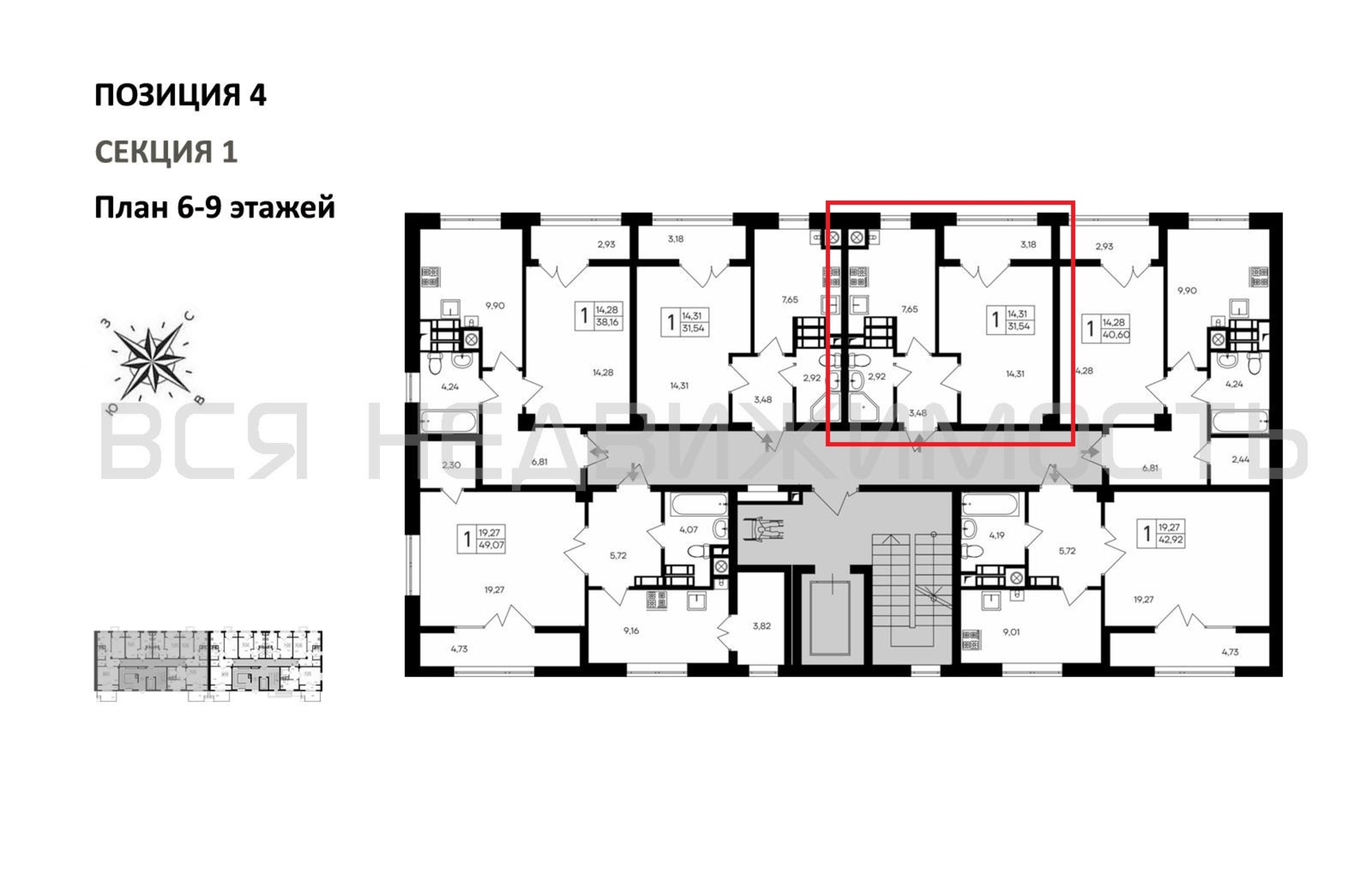 1-комнатная квартира, 31.54 м² 6/9 этаж ID объекта 100116893