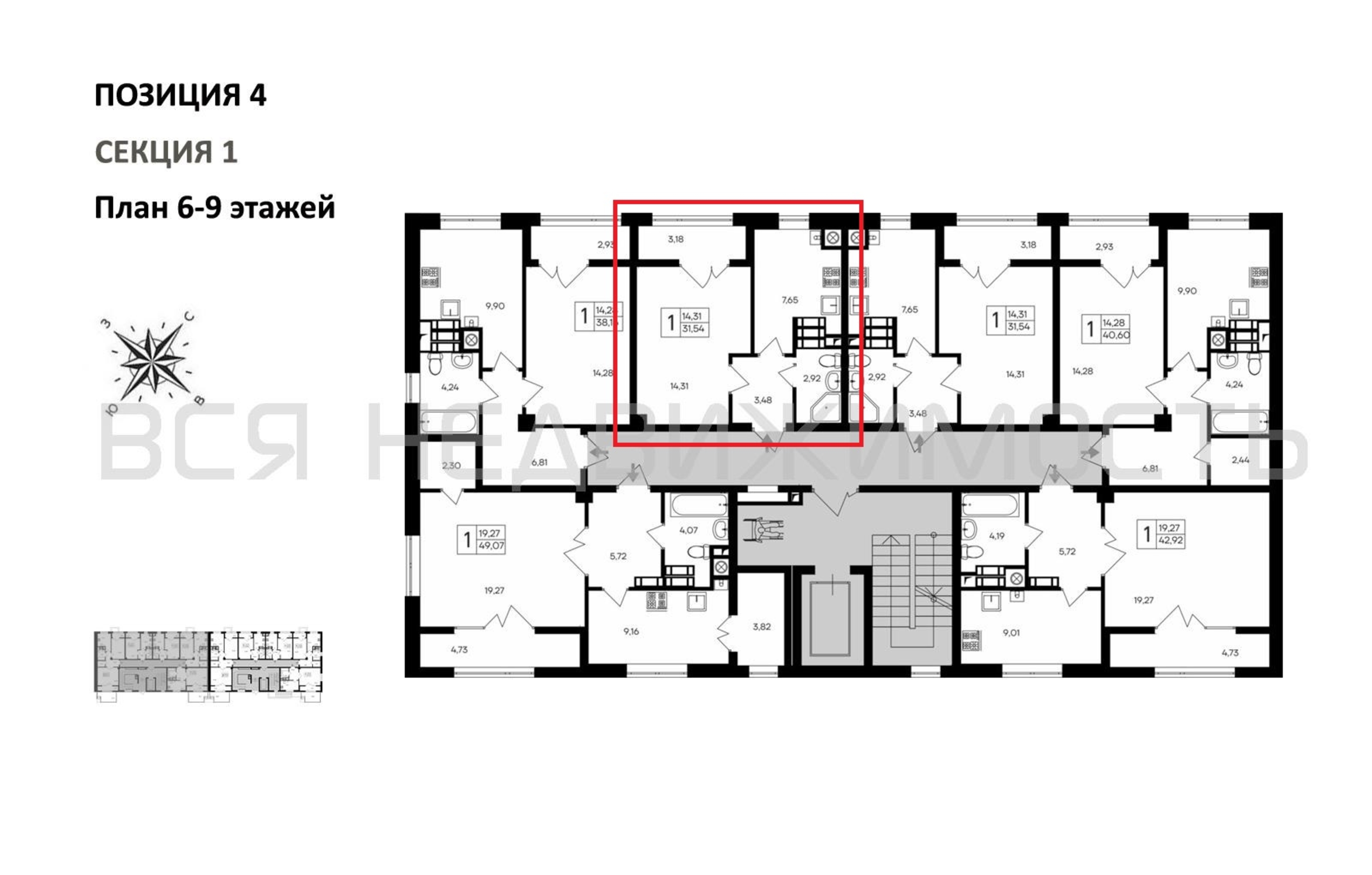 1-комнатная квартира, 31.54 м² 8/9 этаж ID объекта 100116904