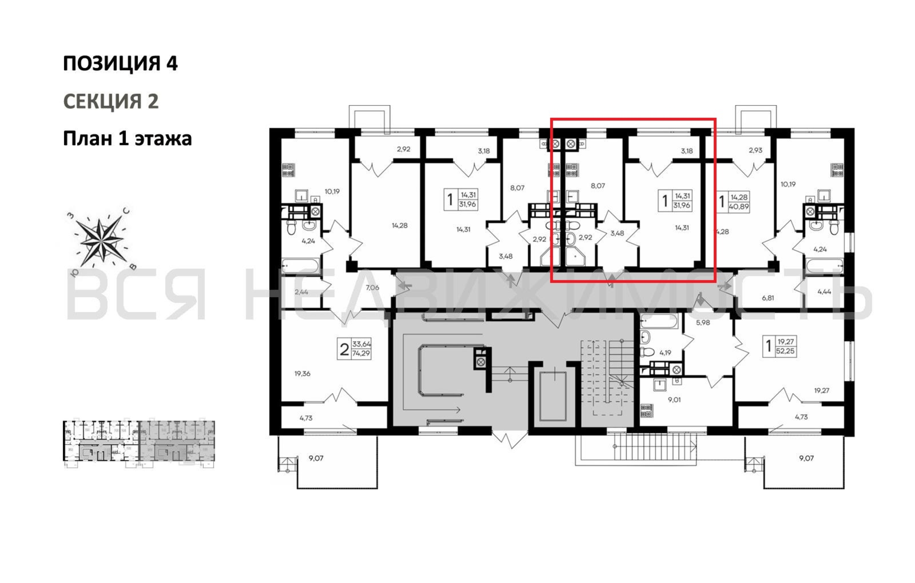 1-комнатная квартира, 31.96 м² 1/9 этаж ID объекта 100116916