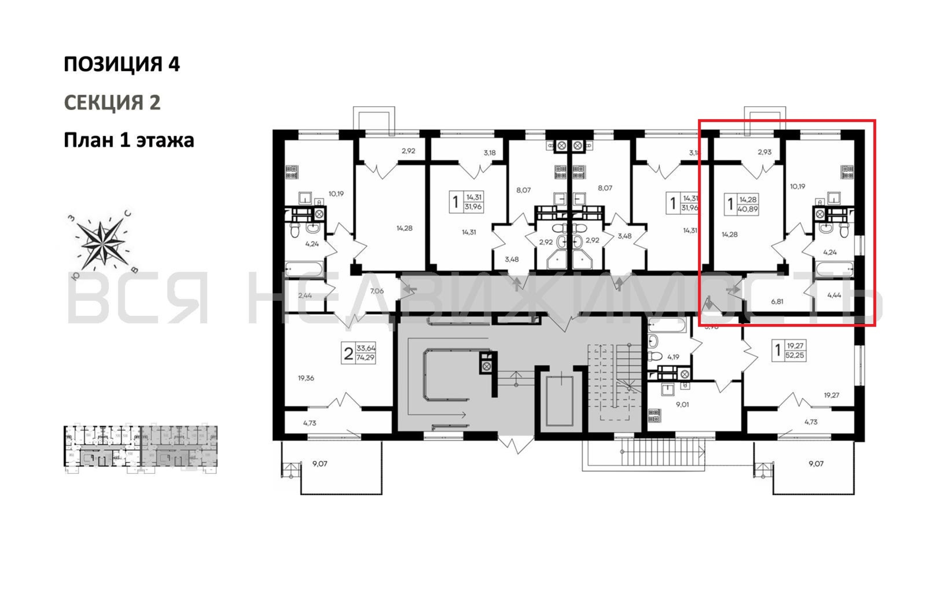1-комнатная квартира, 40.89 м² 1/9 этаж ID объекта 100116917
