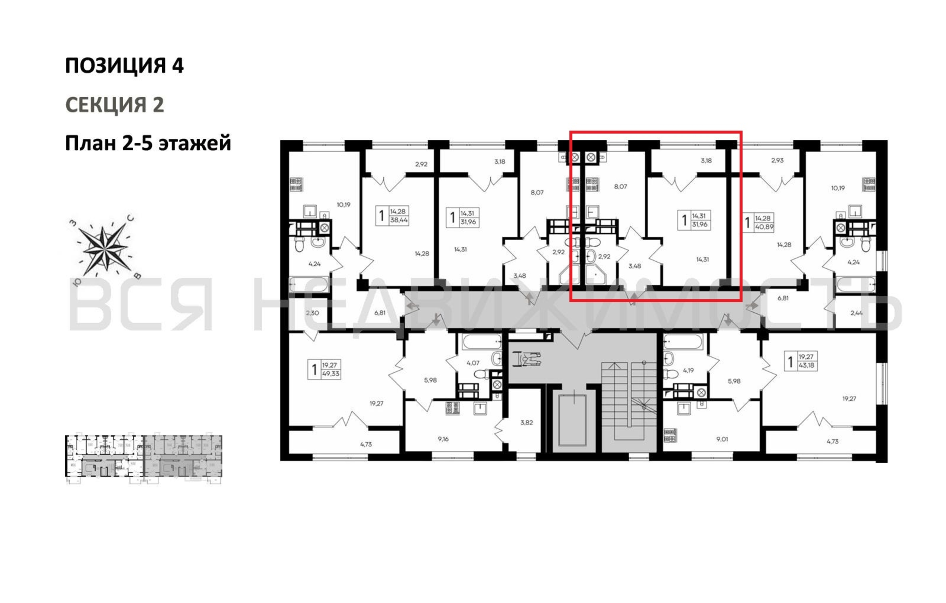 1-комнатная квартира, 31.96 м² 3/9 этаж ID объекта 100116928