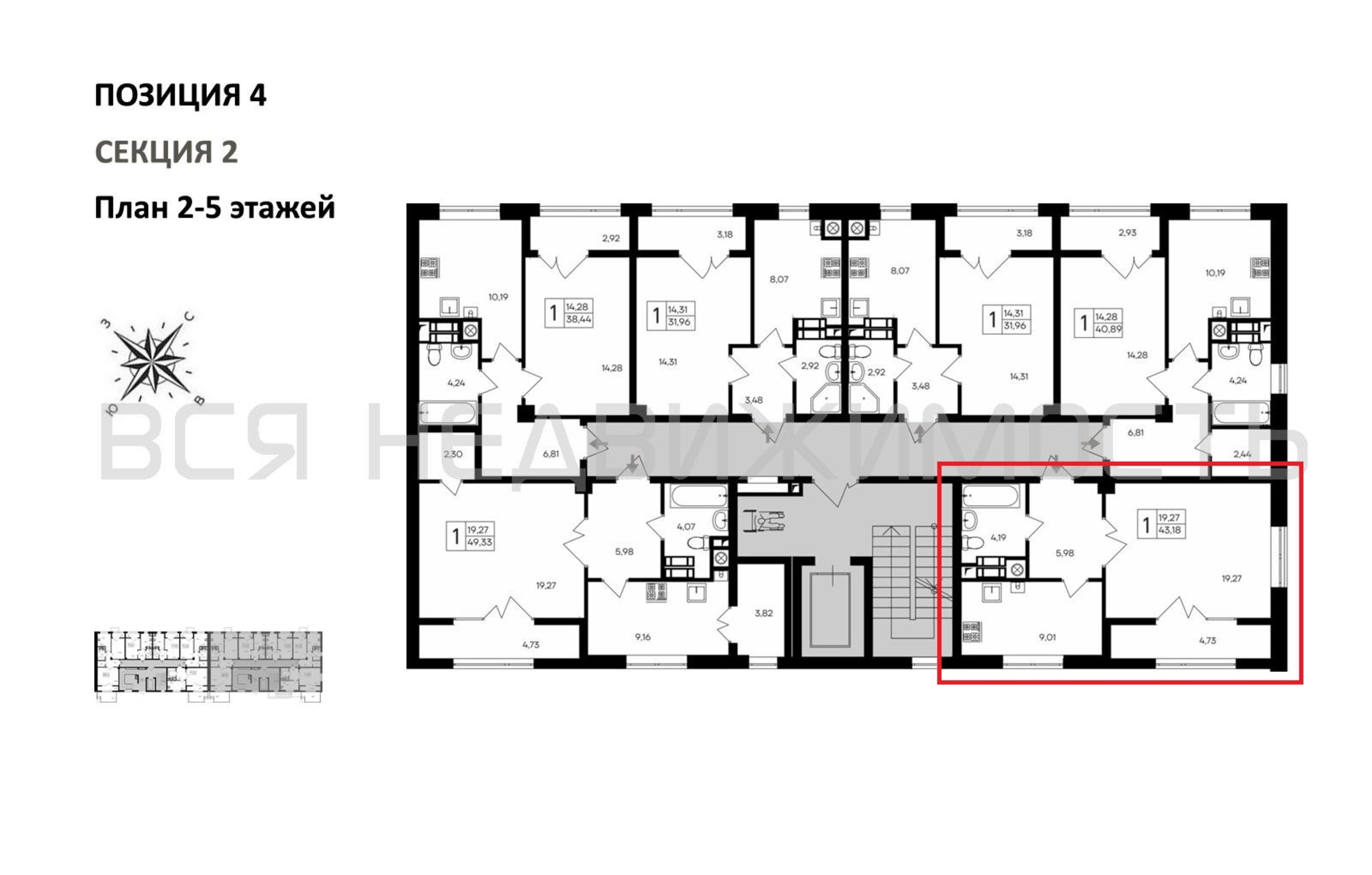 1-комнатная квартира, 43.18 м² 3/9 этаж ID объекта 100116930