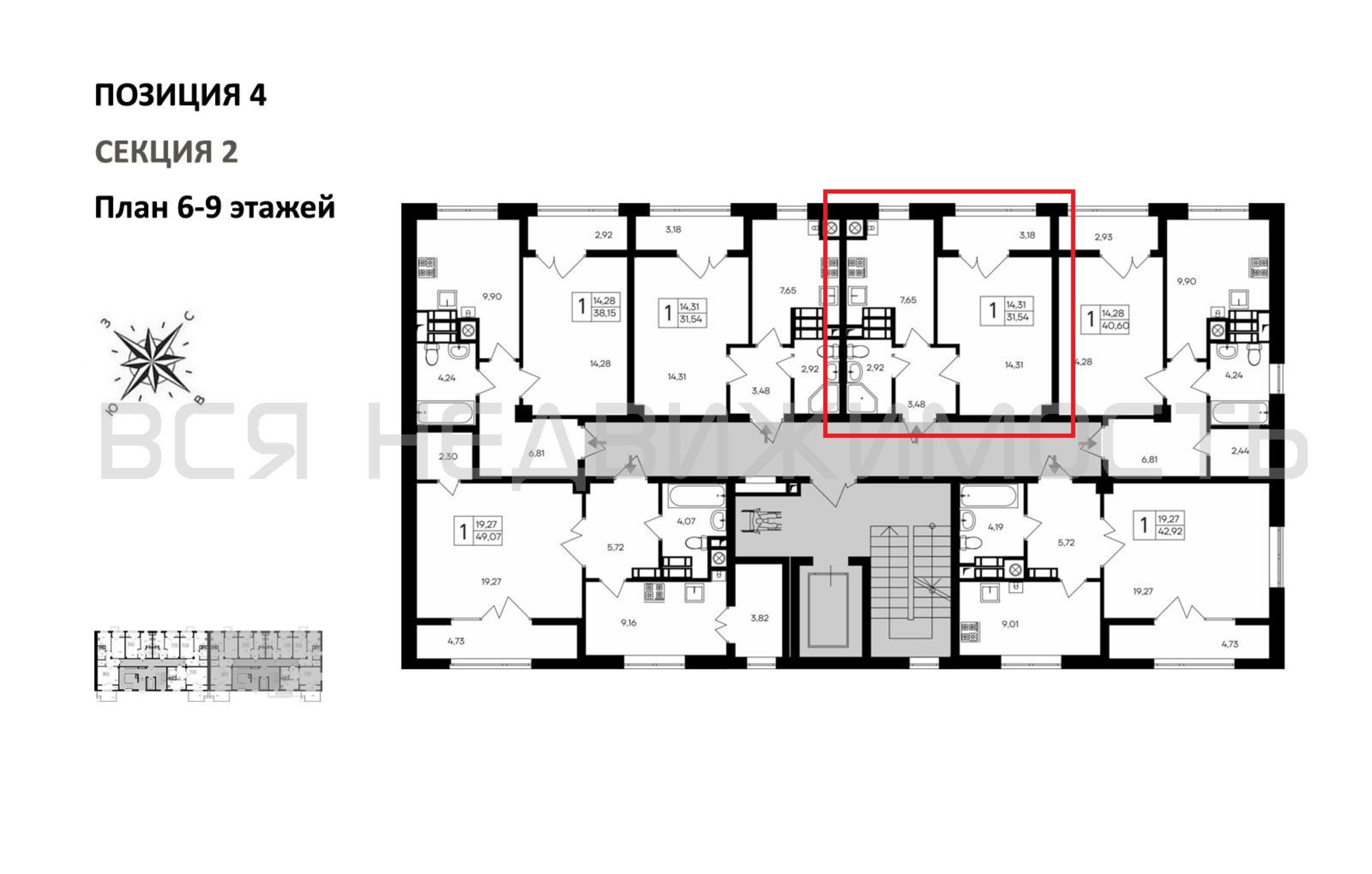 1-комнатная квартира, 31.54 м² 6/9 этаж ID объекта 100116946