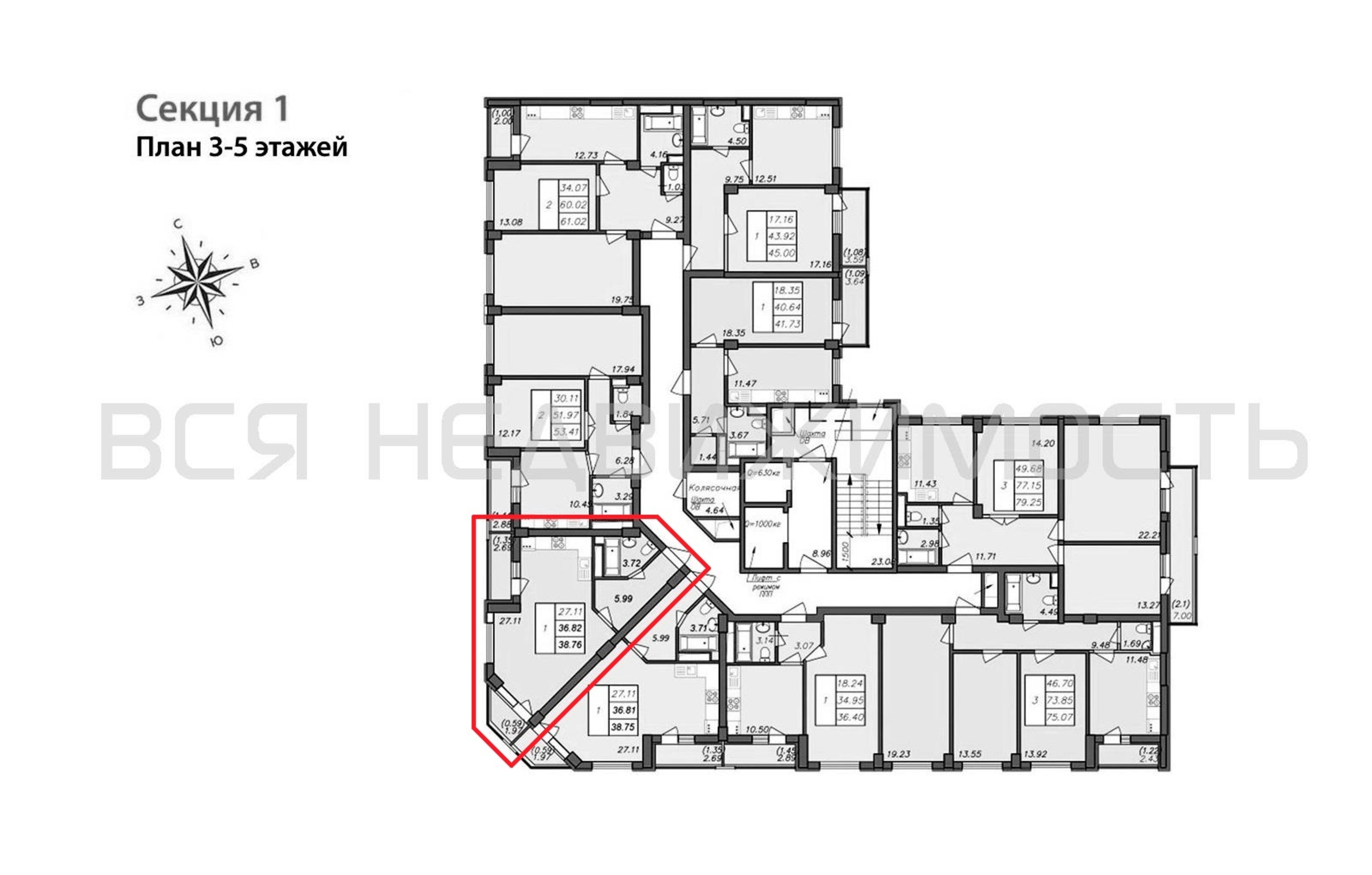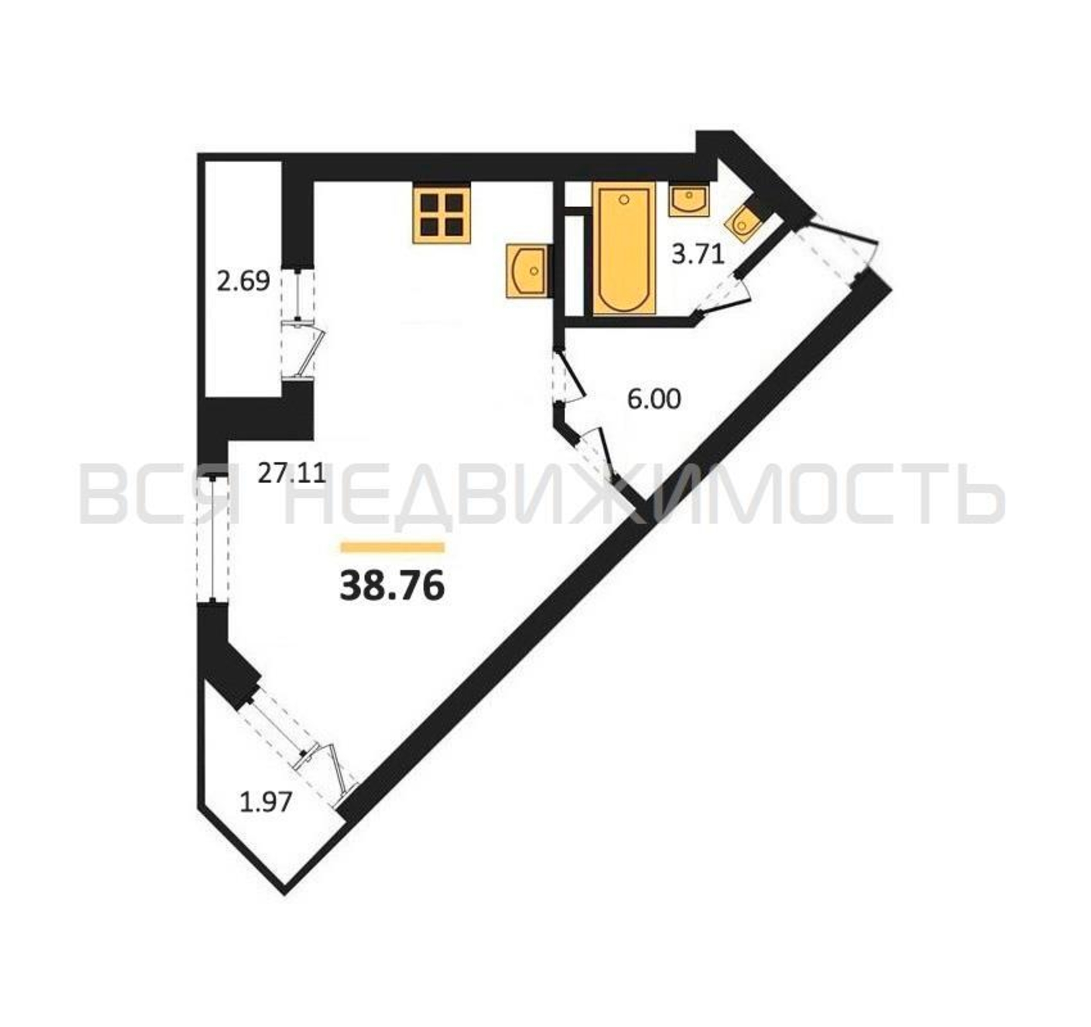 Квартиры-студии, 38.76 м² 5/13 этаж ID объекта 100117986