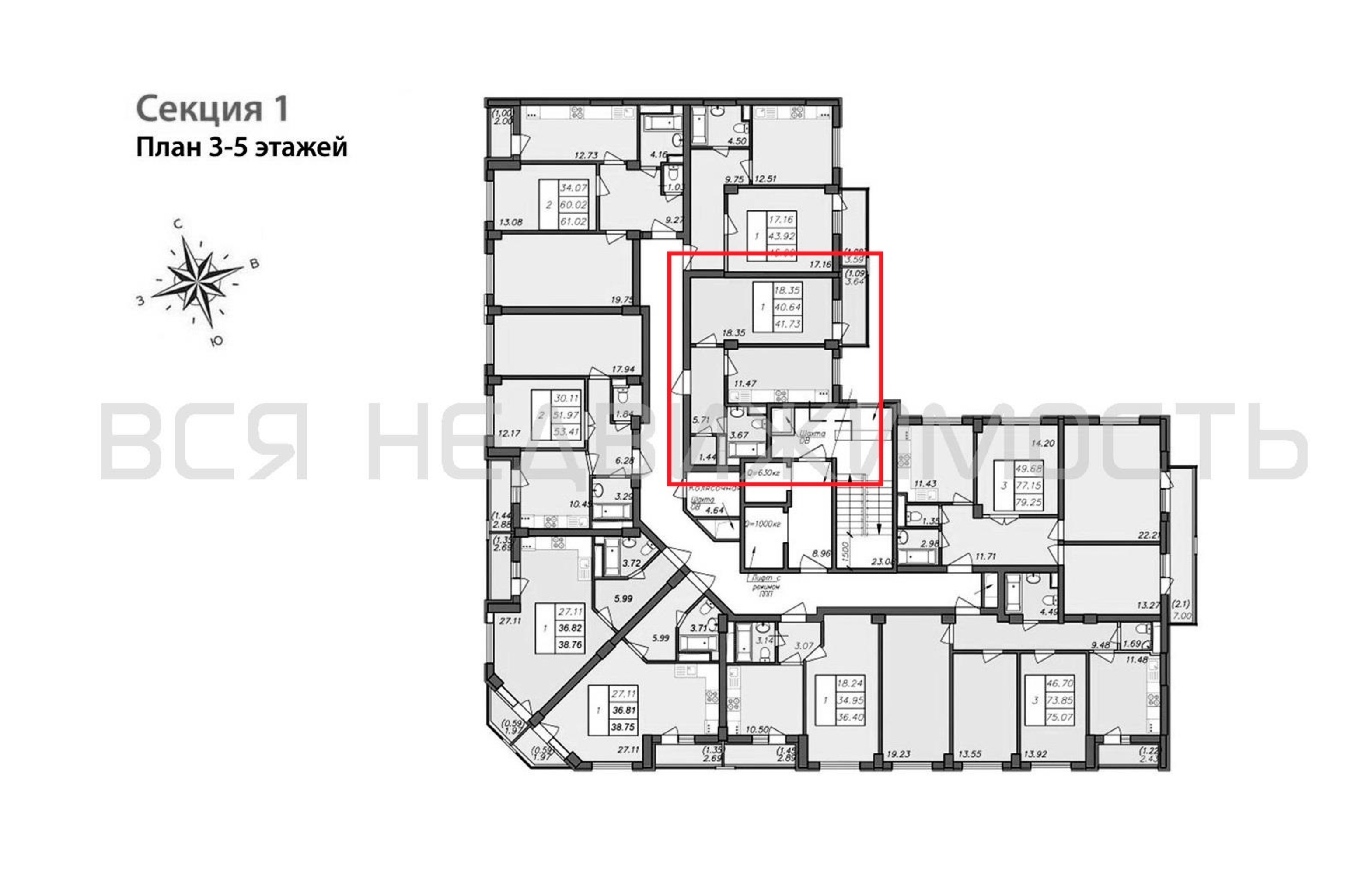 1-комнатная квартира, 41.73 м² 5/13 этаж ID объекта 100117990