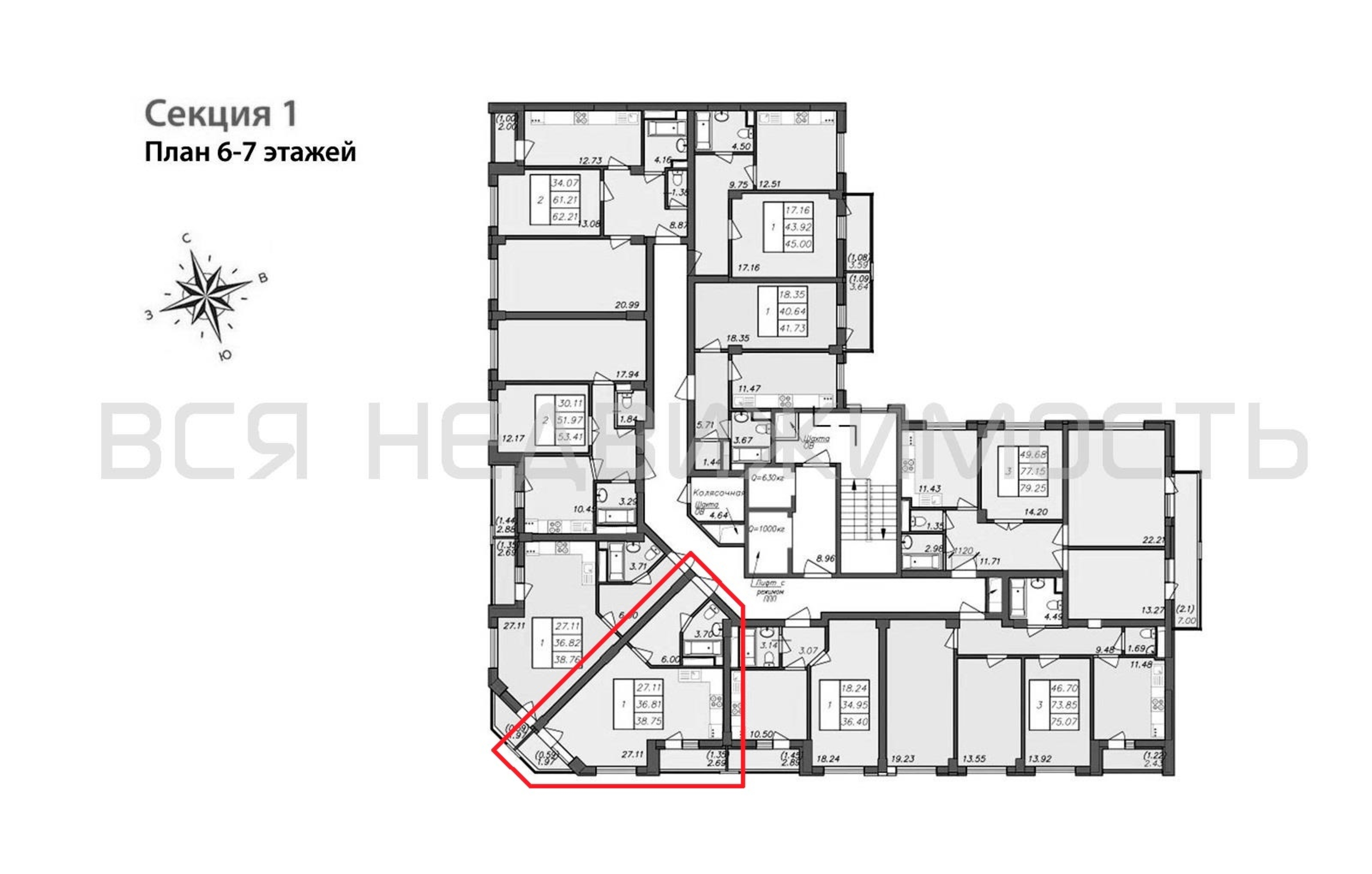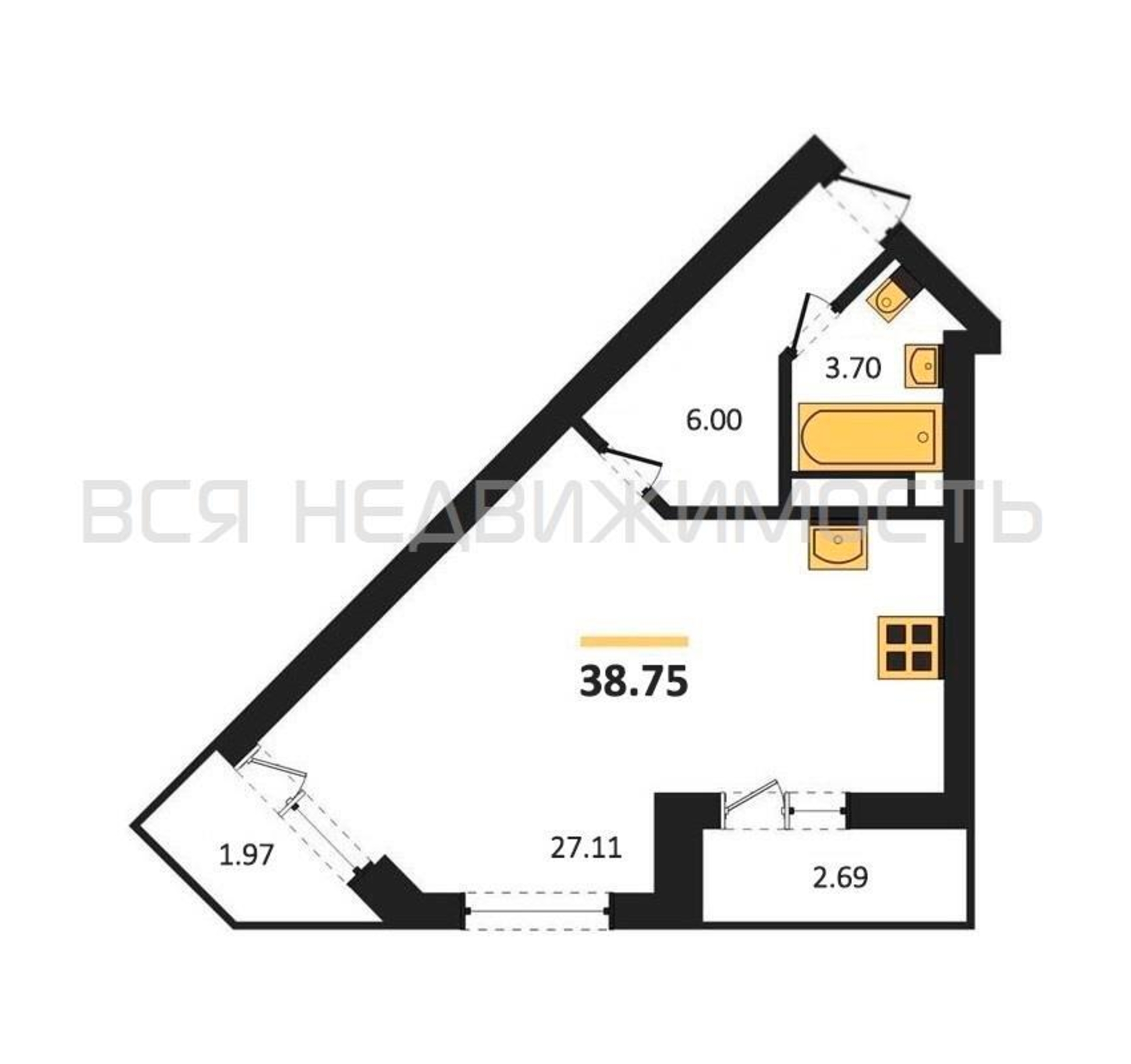 Квартиры-студии, 38.75 м² 7/13 этаж ID объекта 100118003