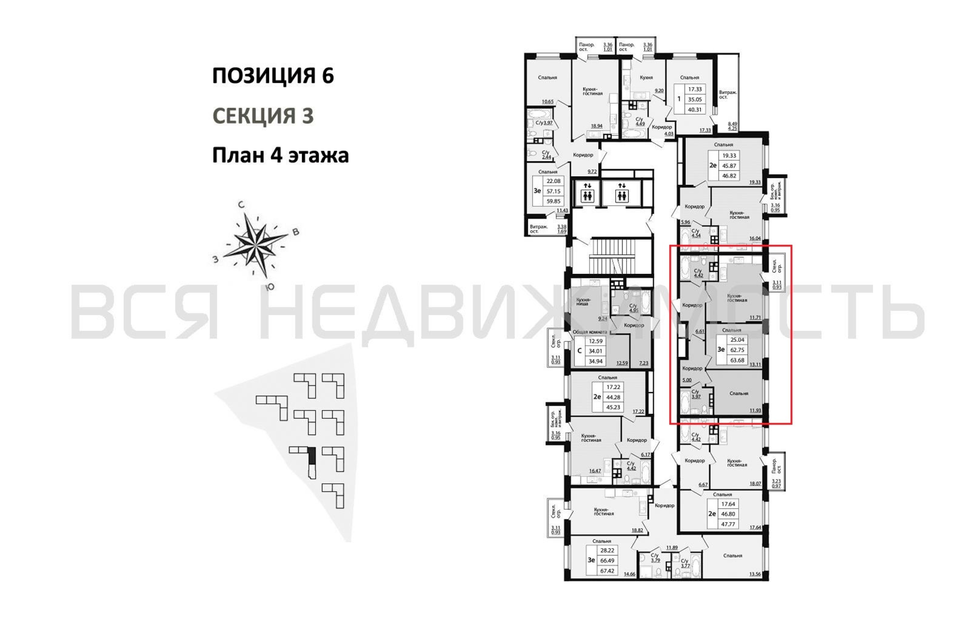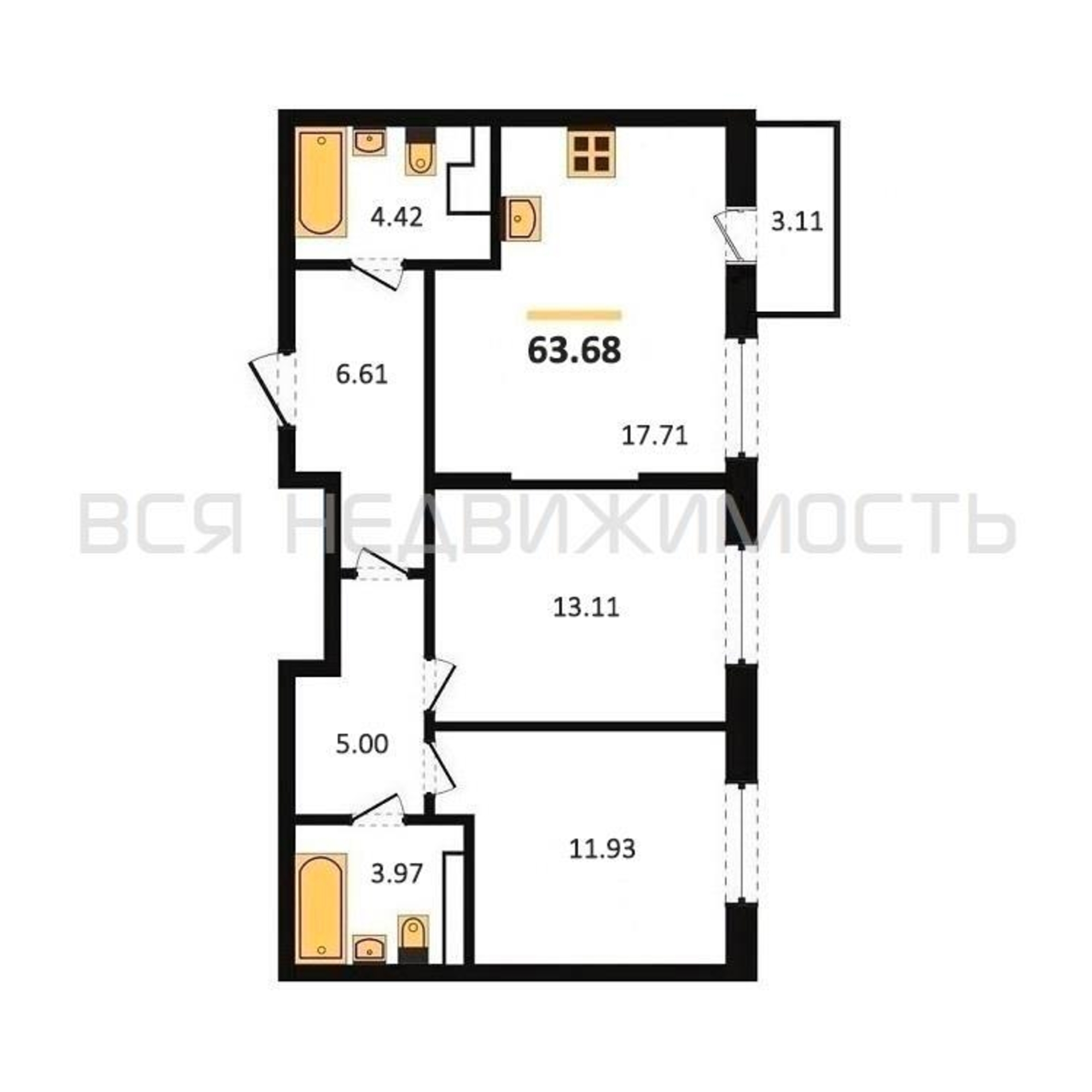 2-комнатная квартира, 63.68 м² 4/9 этаж ID объекта 100118234