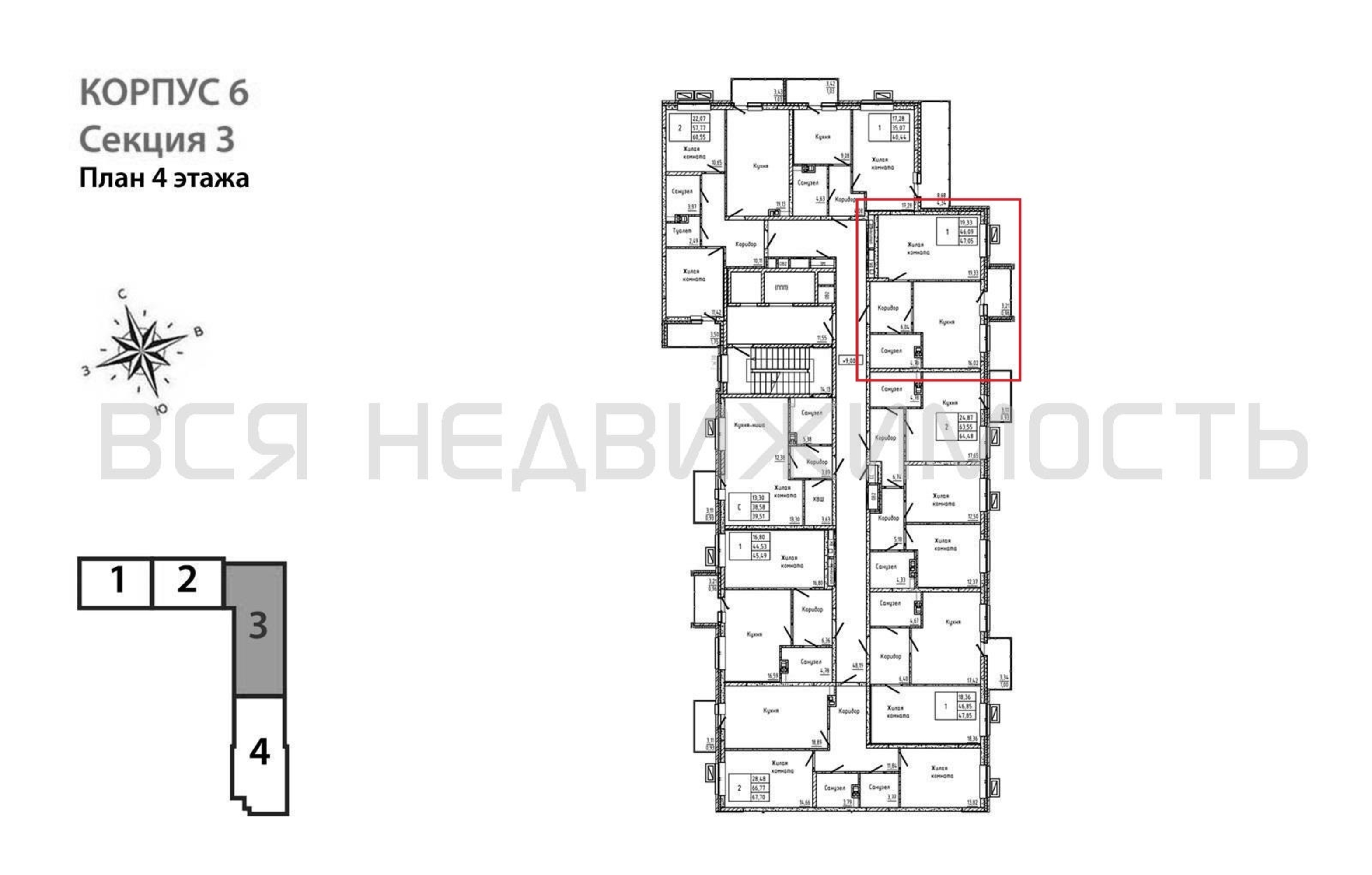 1-комнатная квартира, 47.05 м² 4/9 этаж ID объекта 100118236