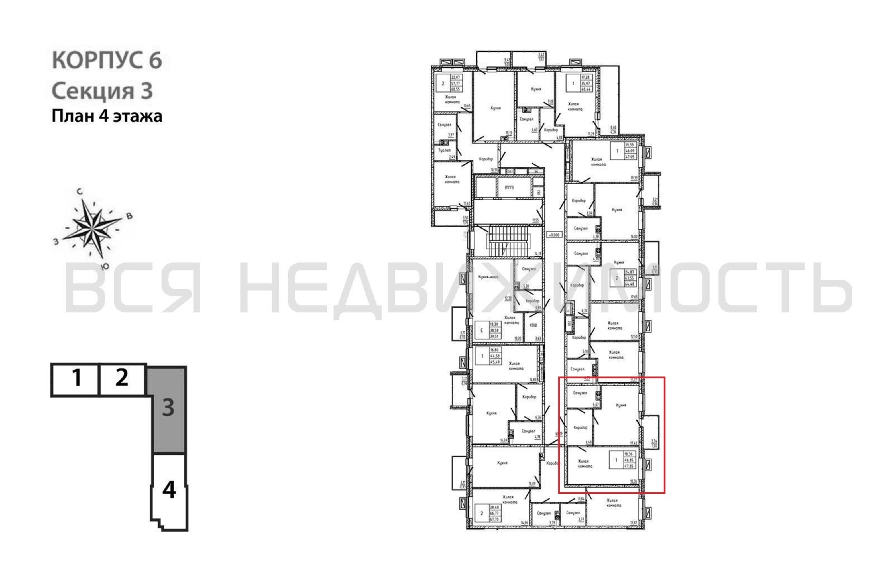 1-комнатная квартира, 47.85 м² 4/9 этаж ID объекта 100118237