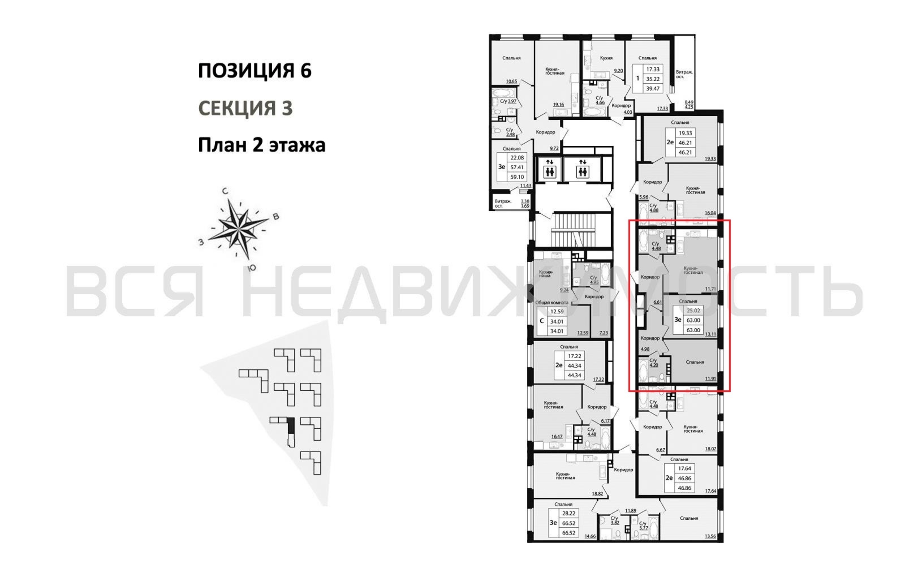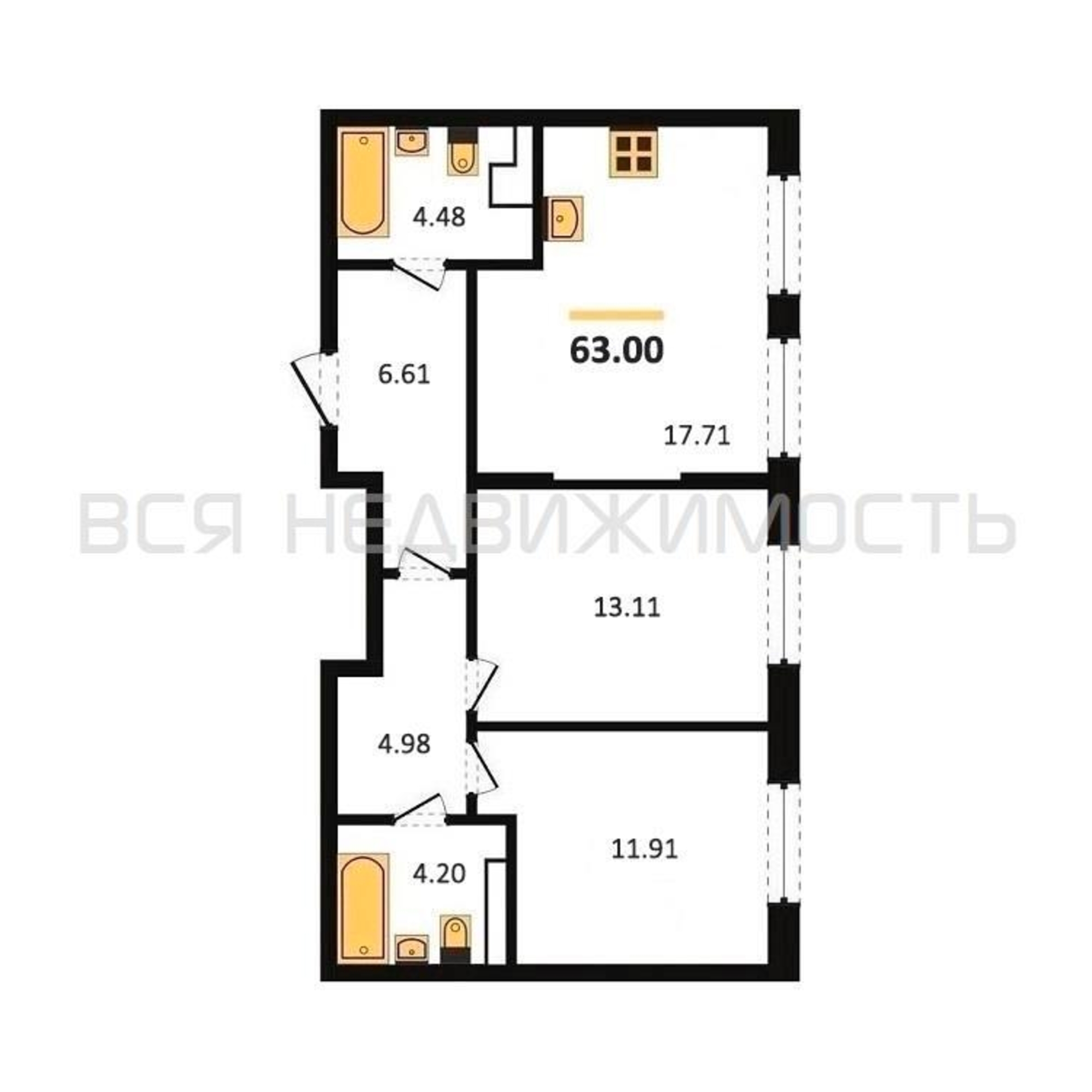 2-комнатная квартира, 63.00 м² 2/9 этаж ID объекта 100118242