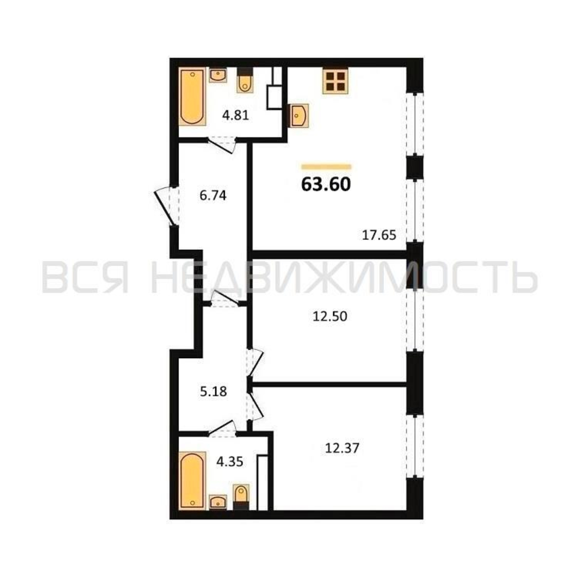2-комнатная квартира, 63.60 м² 2/9 этаж ID объекта 100118242