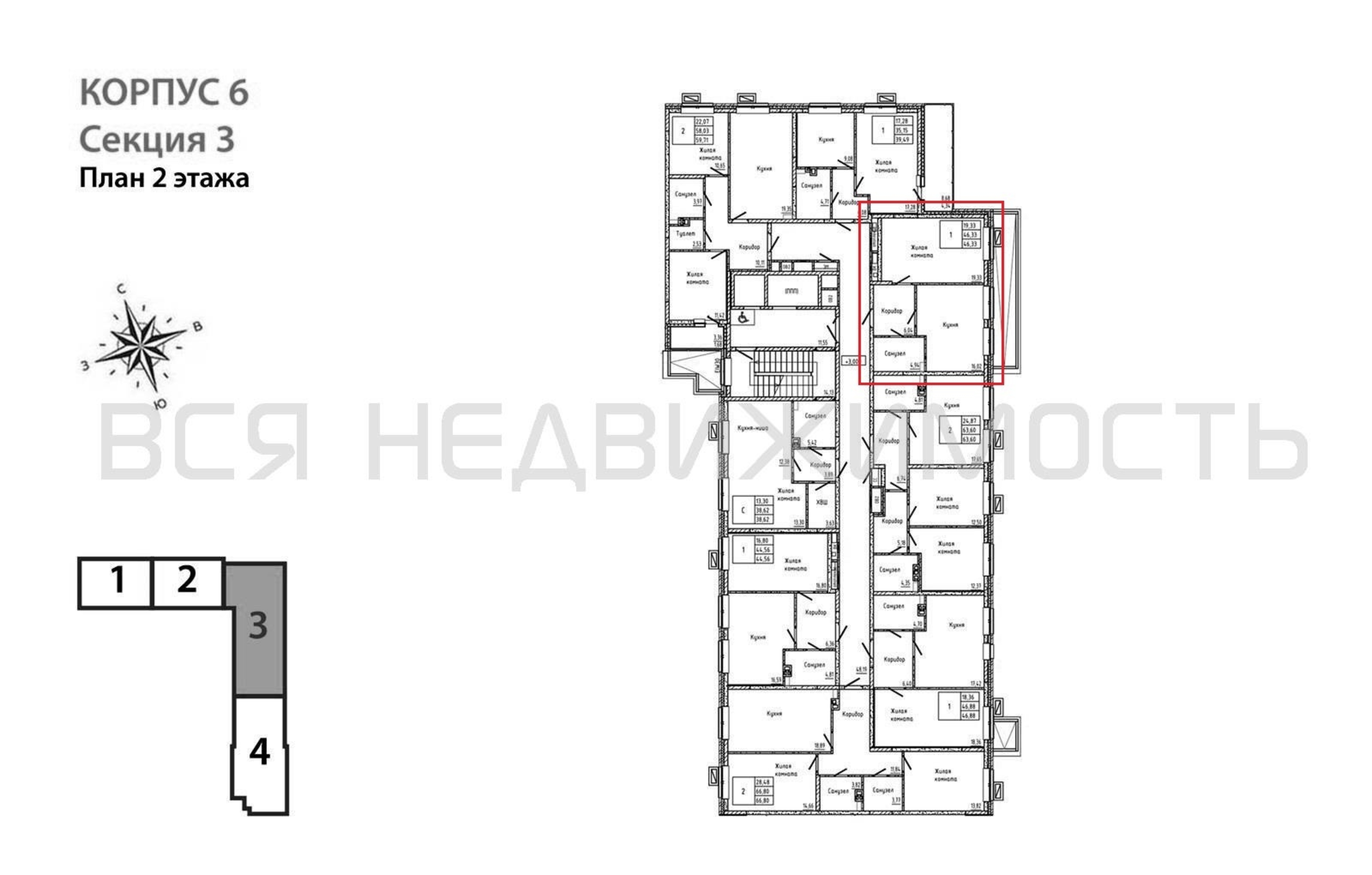 1-комнатная квартира, 46.33 м² 2/9 этаж ID объекта 100118243