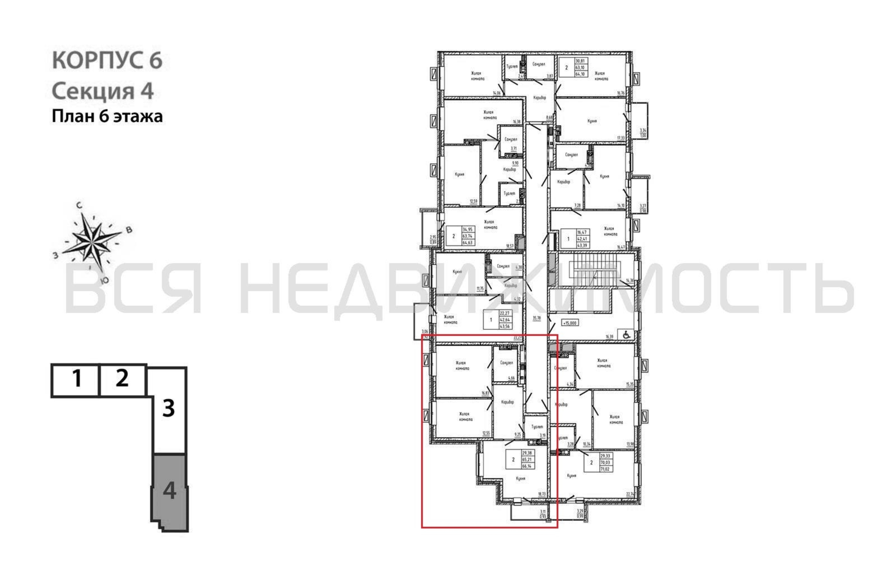 2-комнатная квартира, 66.14 м² 6/11 этаж ID объекта 100118265
