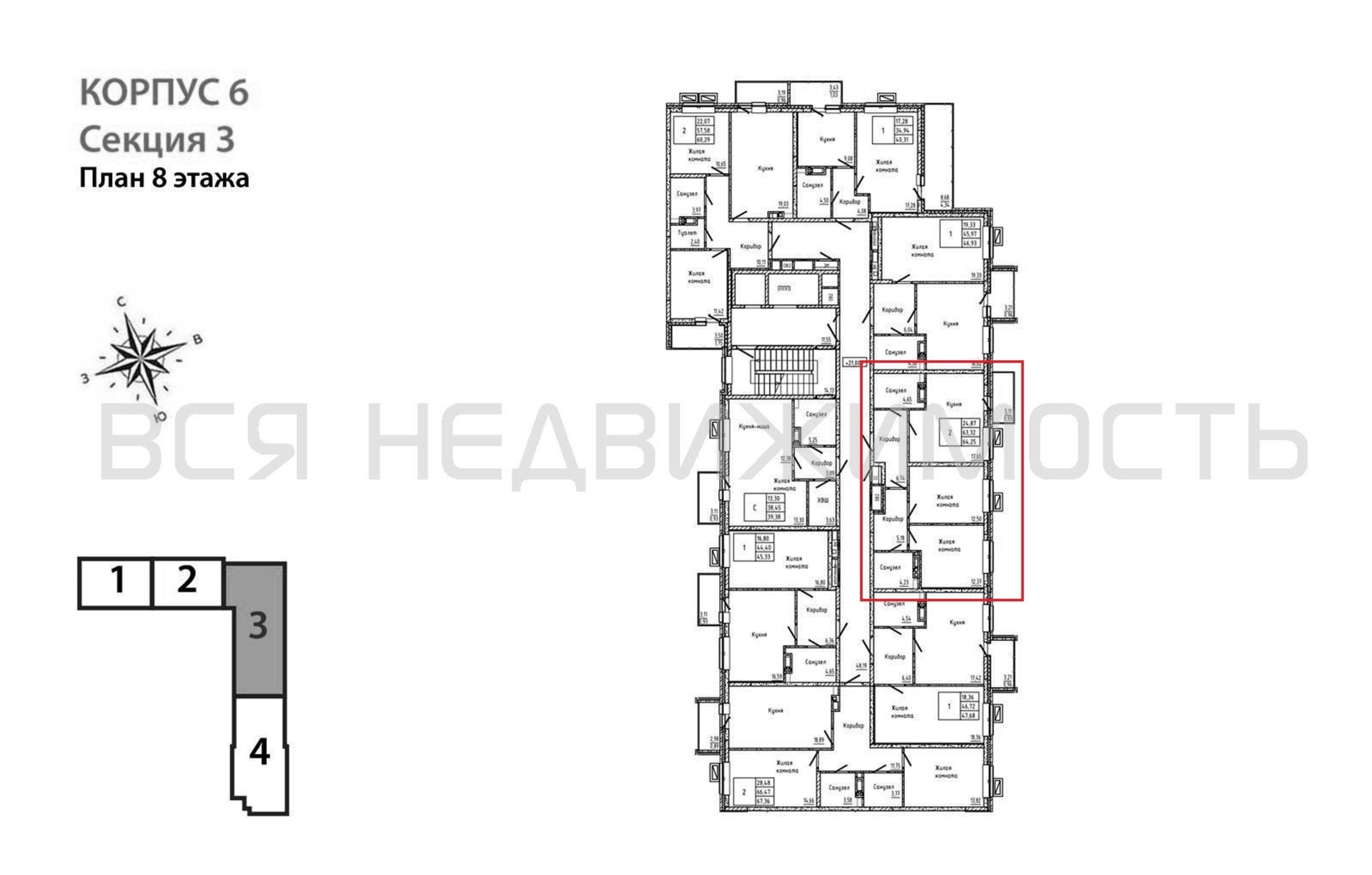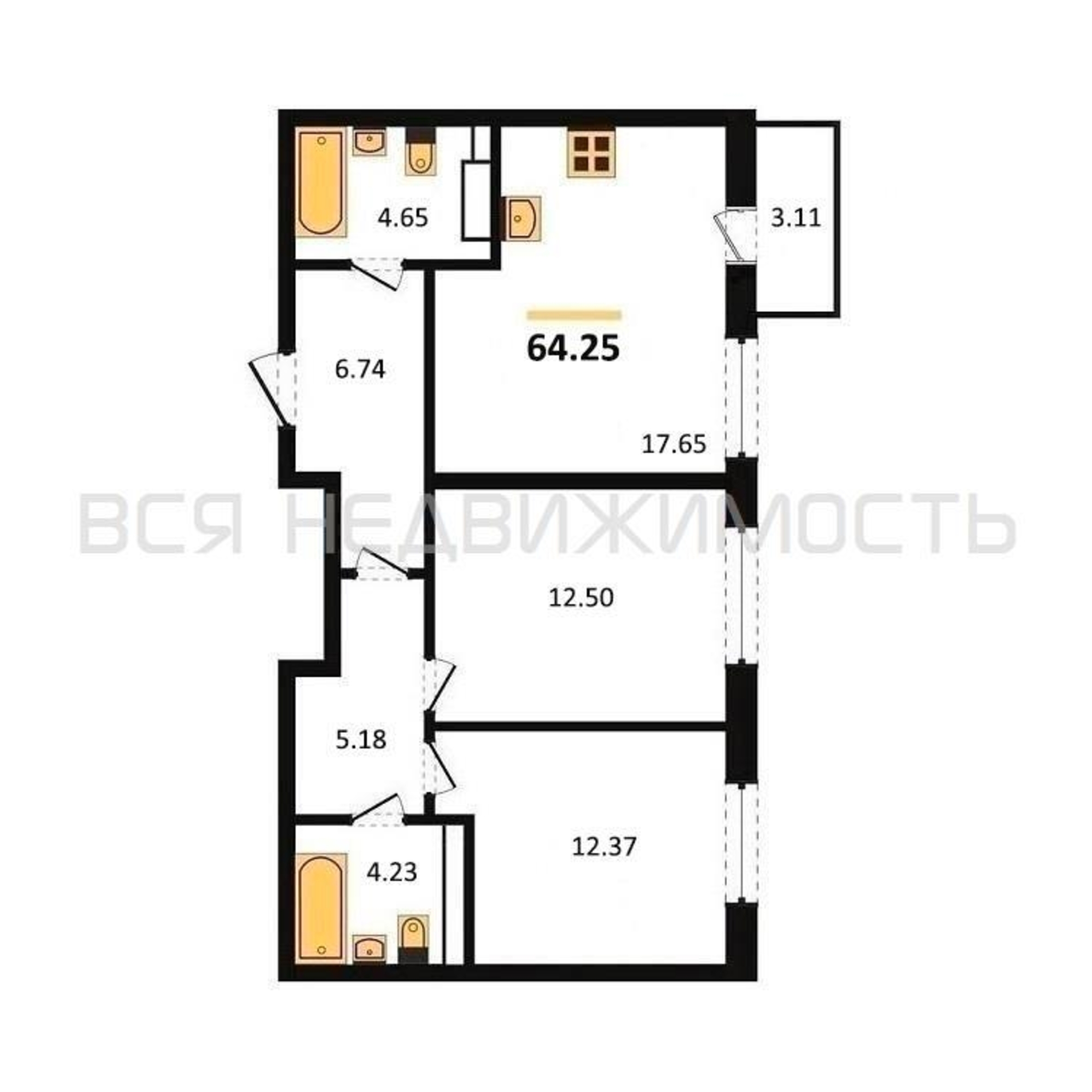 2-комнатная квартира, 64.25 м² 8/9 этаж ID объекта 100118341