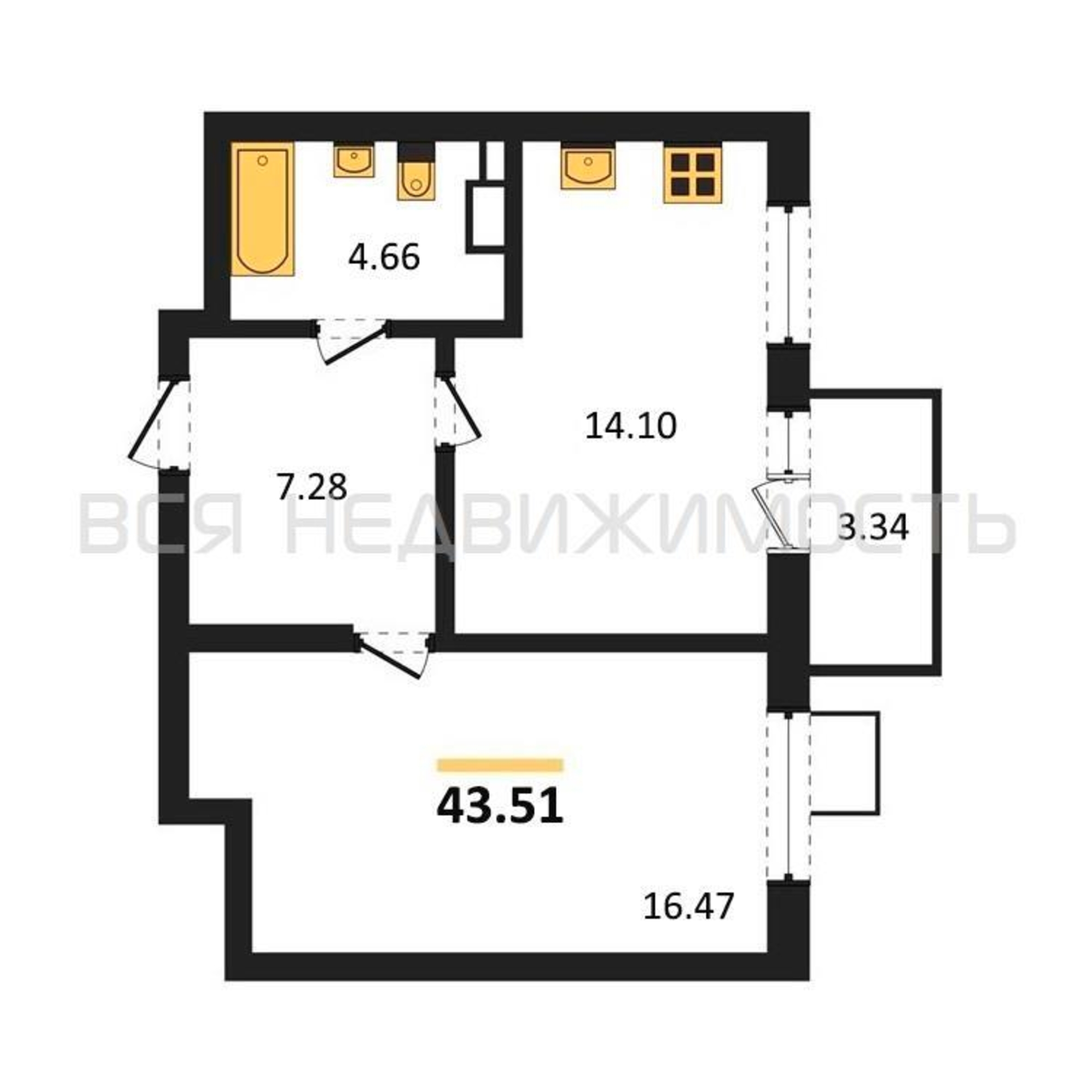 Строительная площадь43.51 м²