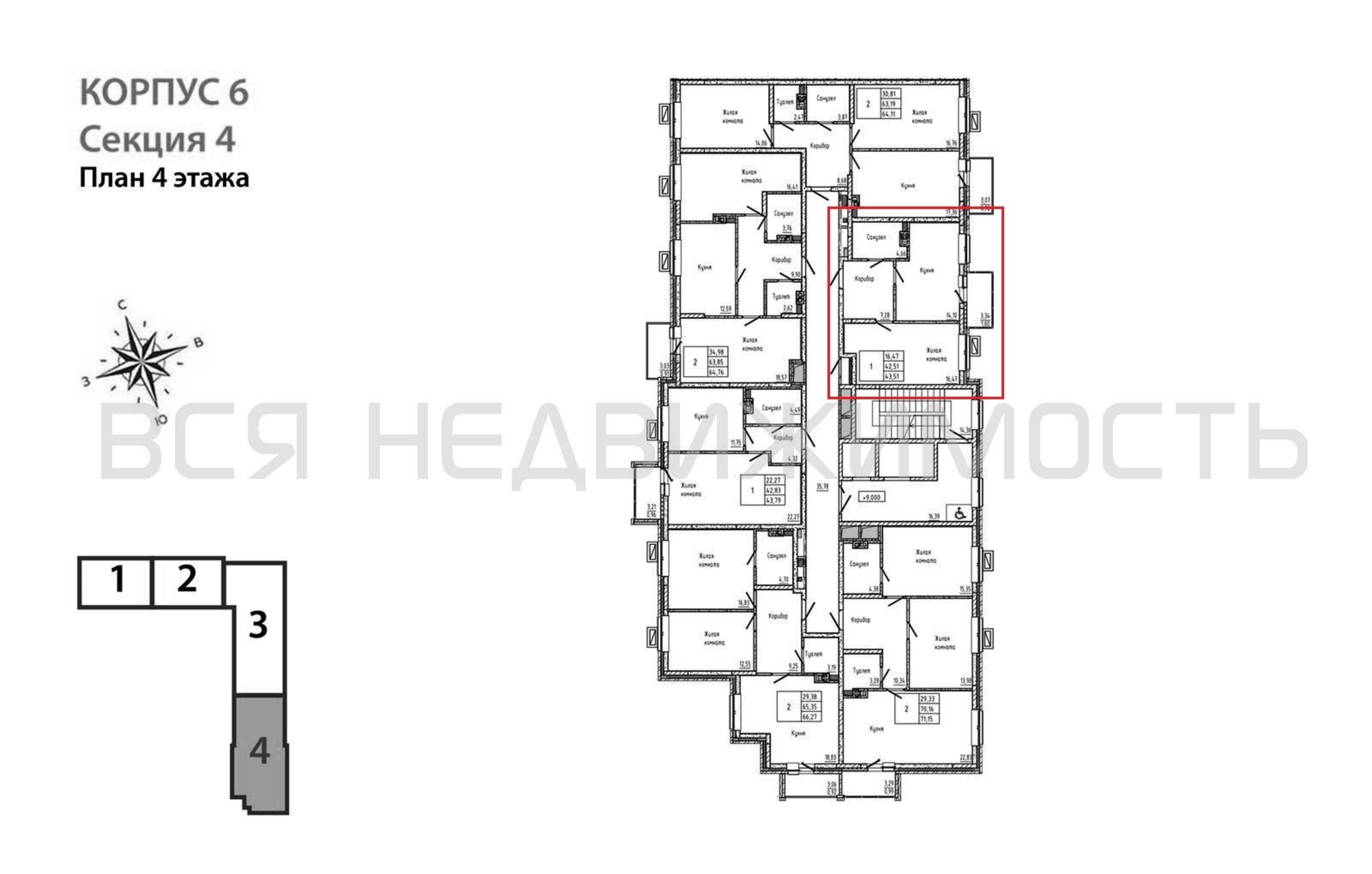 Общая площадь42.51 м²